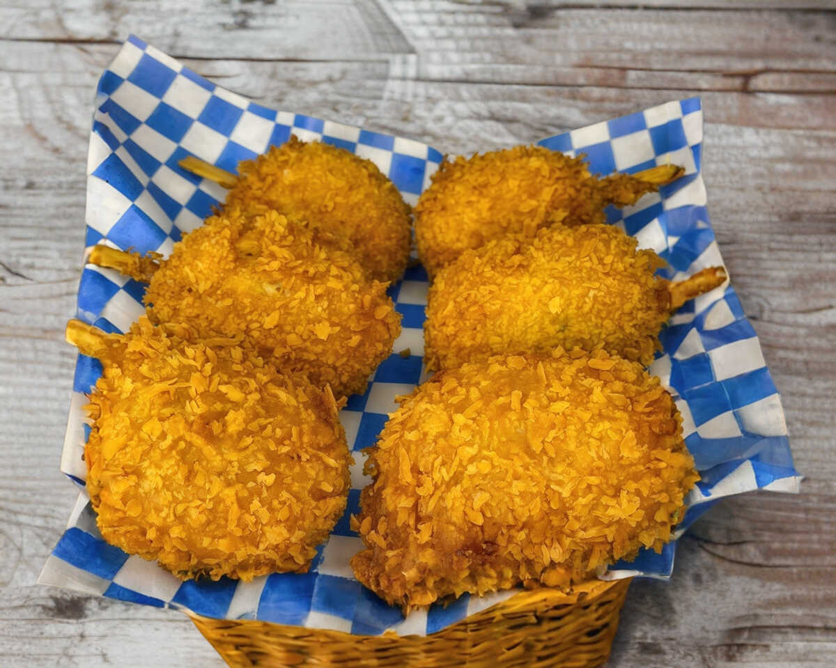Queso derretido y trozos de tocino, todo en una cobertura crujiente. Una combinación indulgente que no falla.