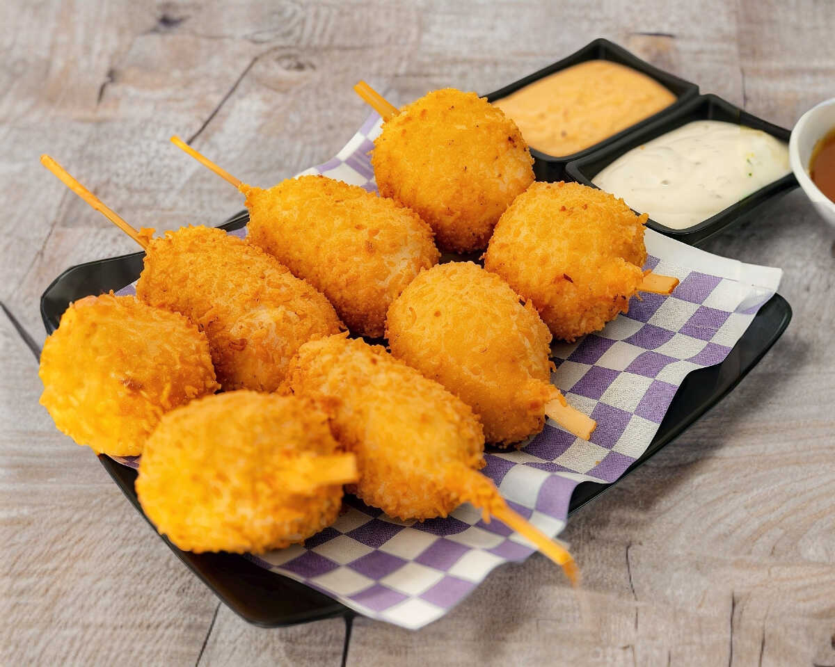 Mini banderillas de salchichas y 3 de queso, envueltos en una masa crujiente perfectas para disfrutar en compañía de nuestros diferentes aderezos y sazonadores.