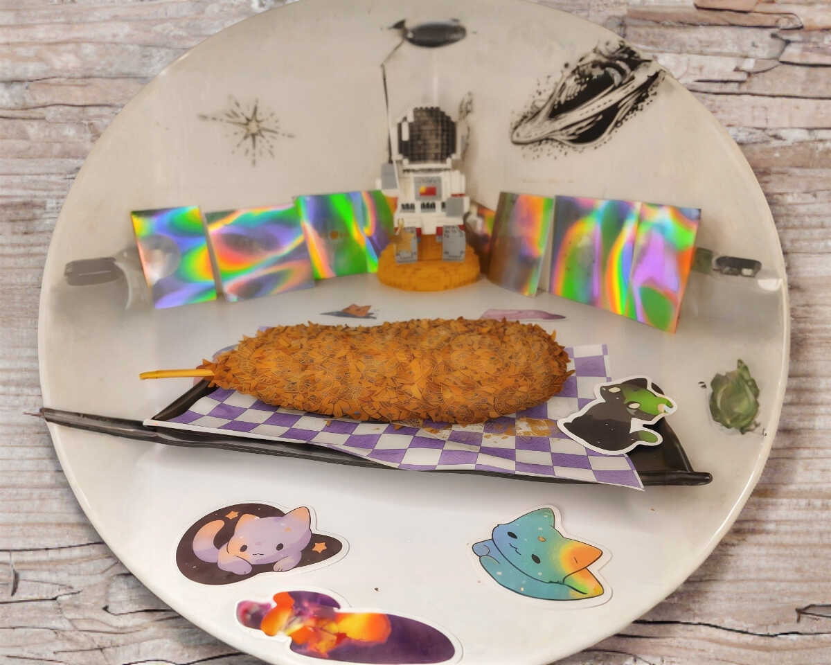 Salchicha Frankfurt jumbo envuelta en nuestra crujiente masa dorada, de tamaño galáctico y sabor imparable. Hecha para quienes no se conforman con poco.