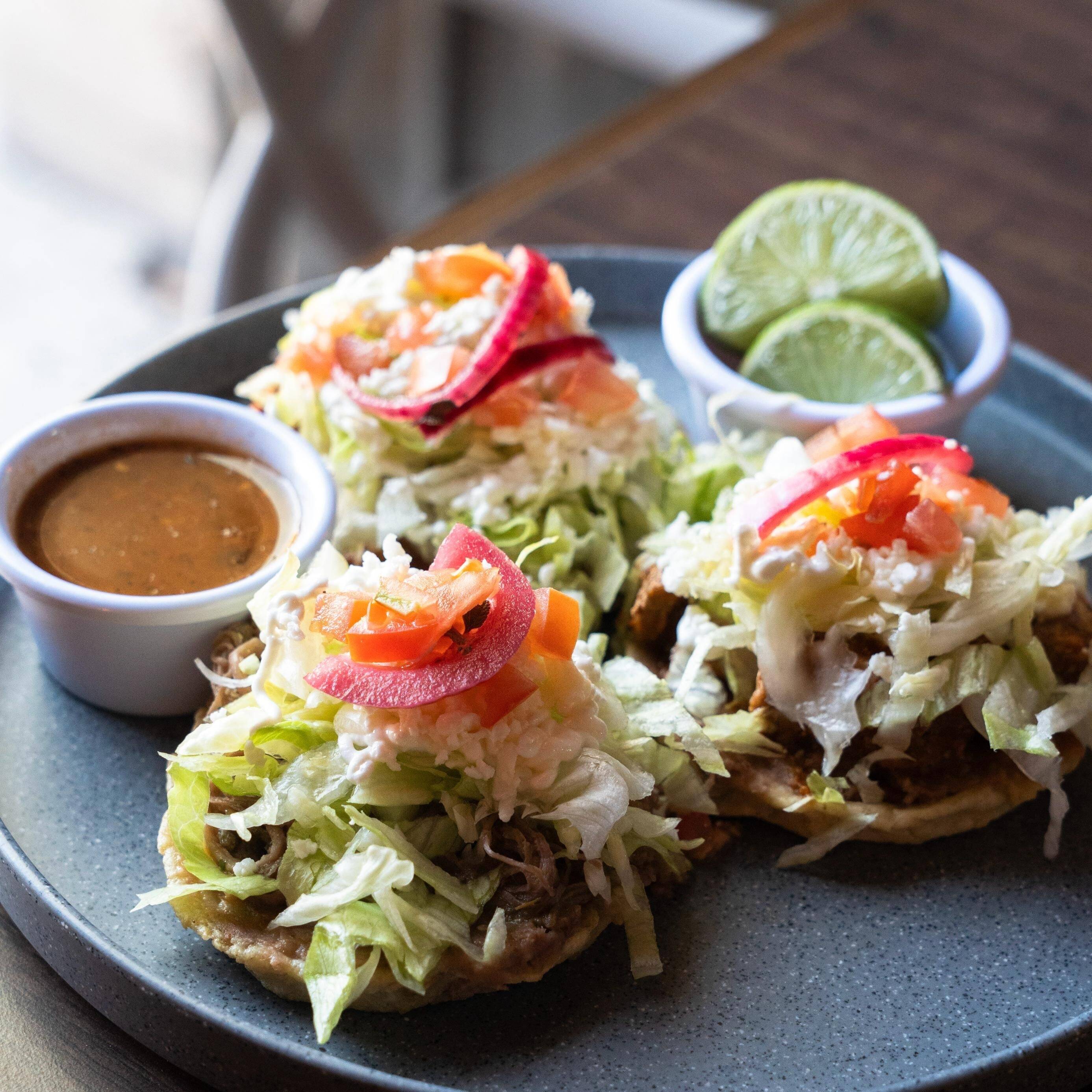 Orden de 3 sopes servidos con frijoles, crema, queso, lechuga y guiso a elegir.