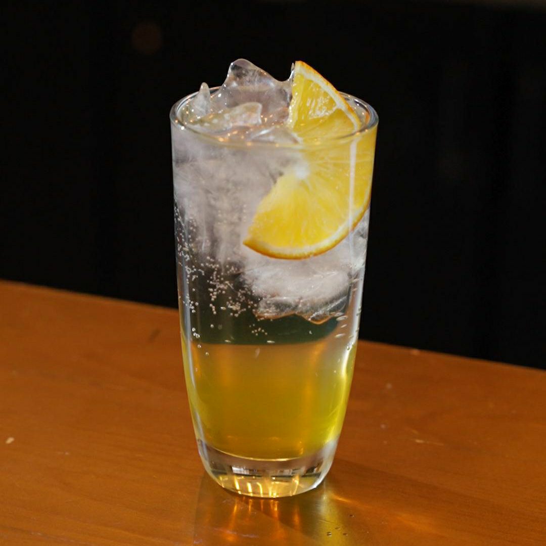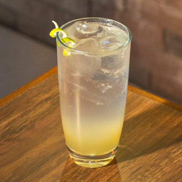 Espresso de café, agua tonica y esencia de limón amarillo.