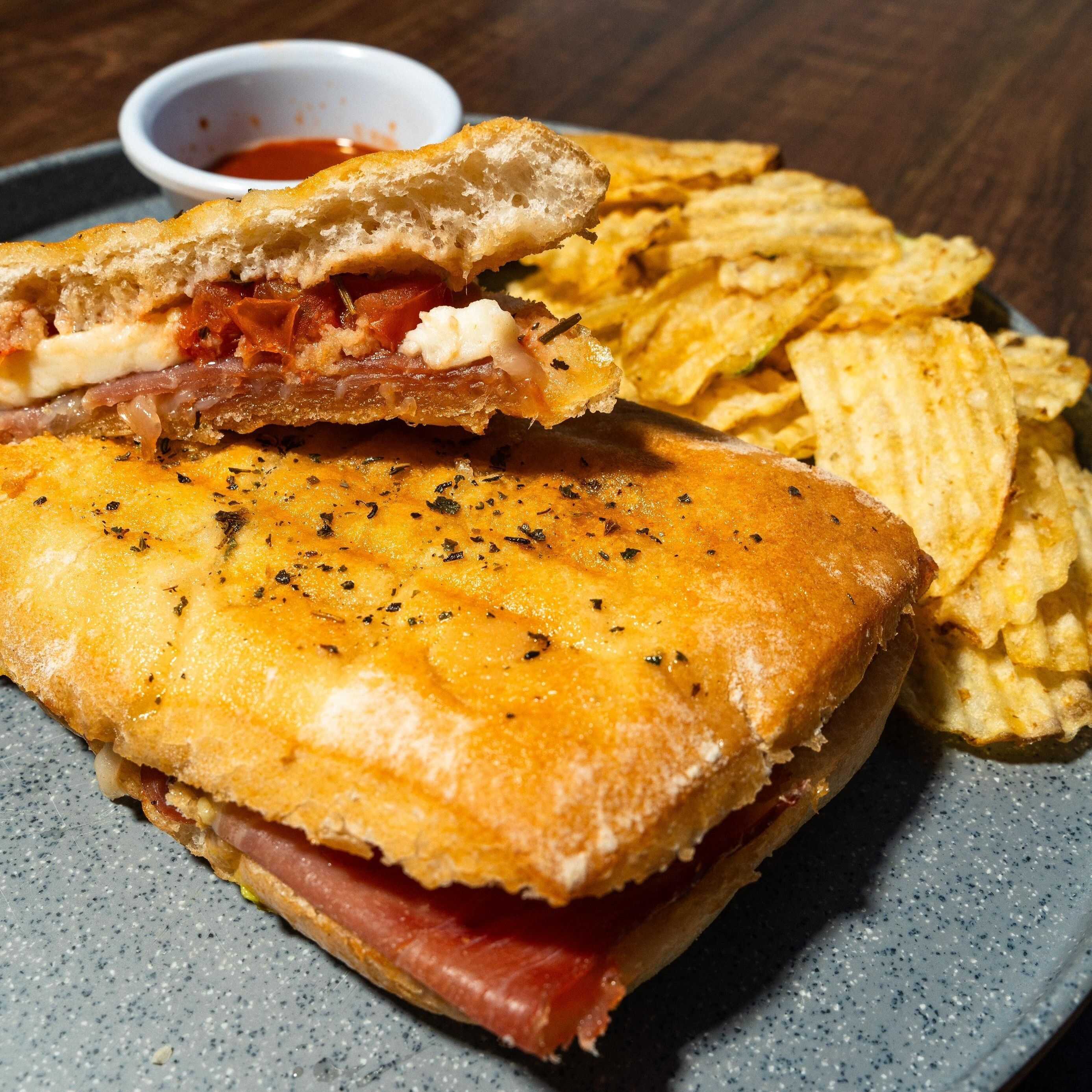 Pan brioche, queso chihuahua, huevo estrellado y bañado en salsa de chipotle. Acompañado de ensalda de lechuga, jitomate, pepino y aderezo, servido con mayonesa natural chipotle o jalapeño.