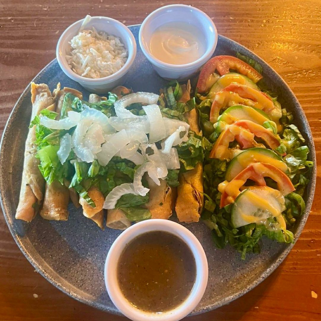 Orden de 3 flautas servidas con salsa verde, salsa roja dulce , crema y queso.