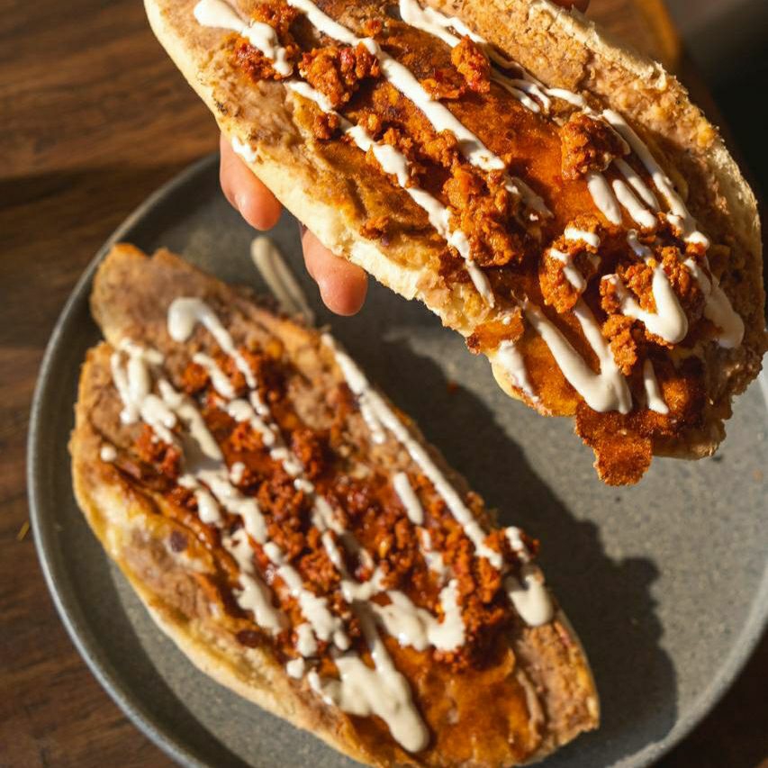 preparados con pan lagunero, frijoles refritos, queso chihuahua planchado y guiso a elegir.