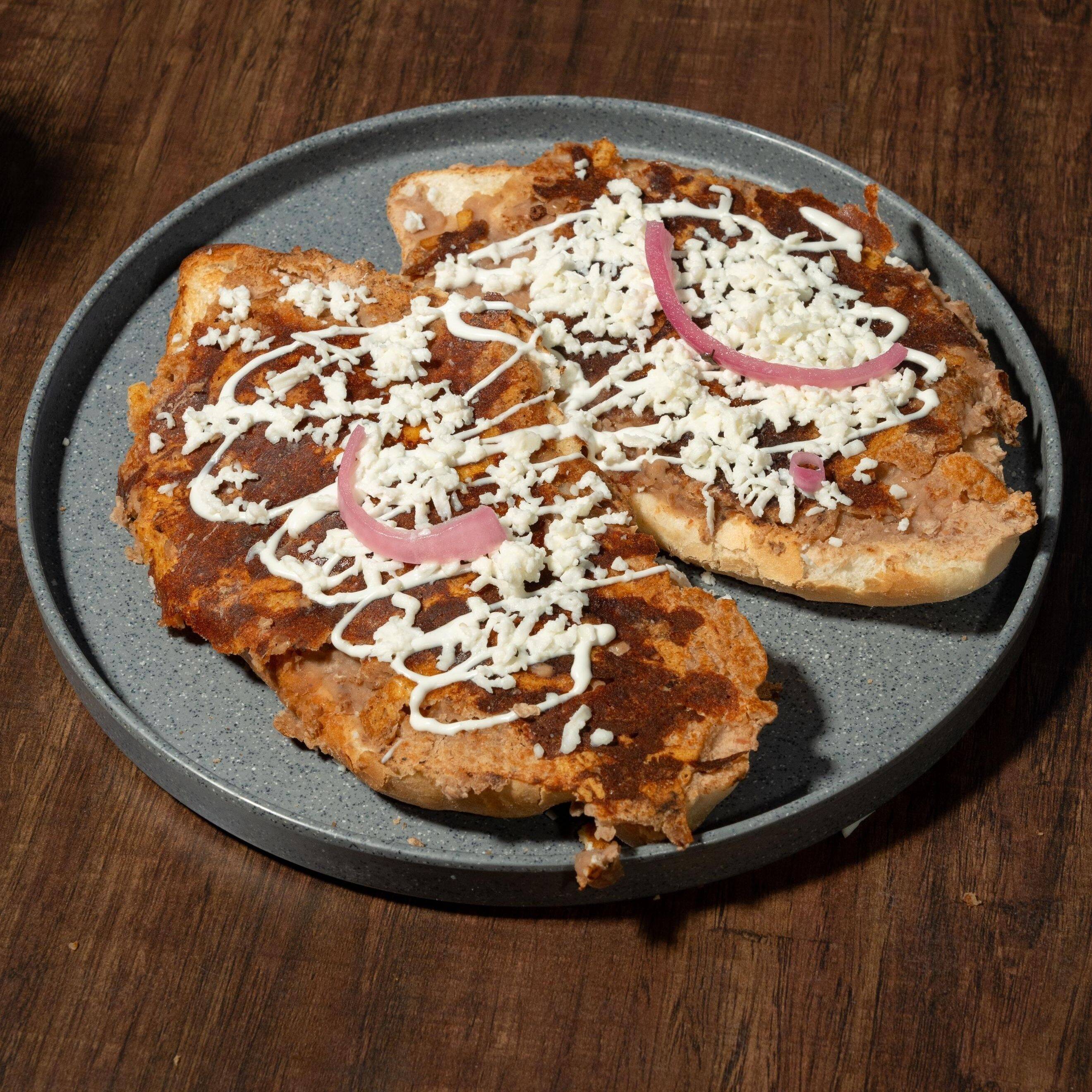 Preparados con pan lagunero, frijoles refritos y queso chihuahua planchado.