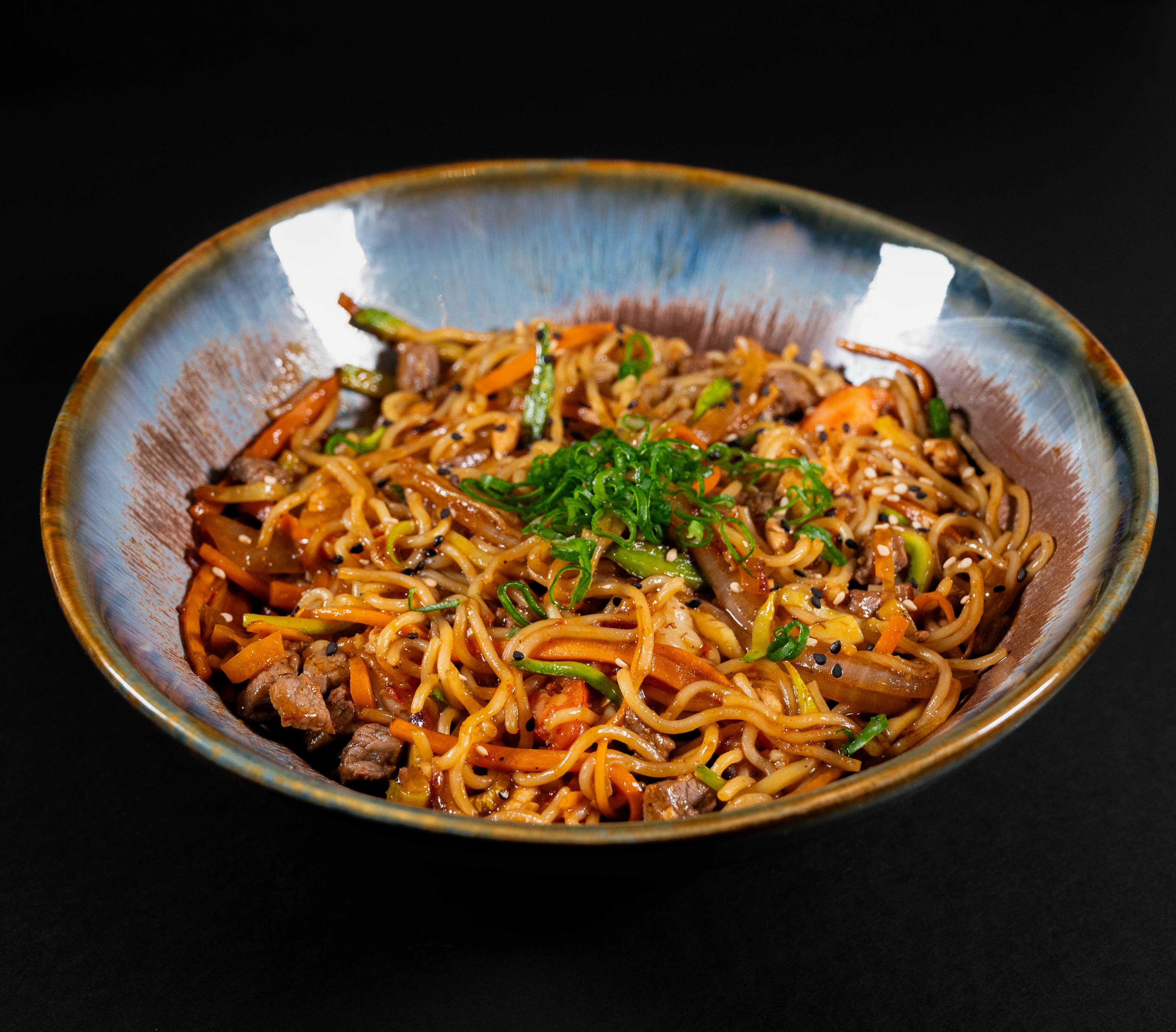 Tradicional sopa oriental, elaborada con fondo de verduras chashu de la casa, negi, pasta ramen y un toque de aceite de chile.