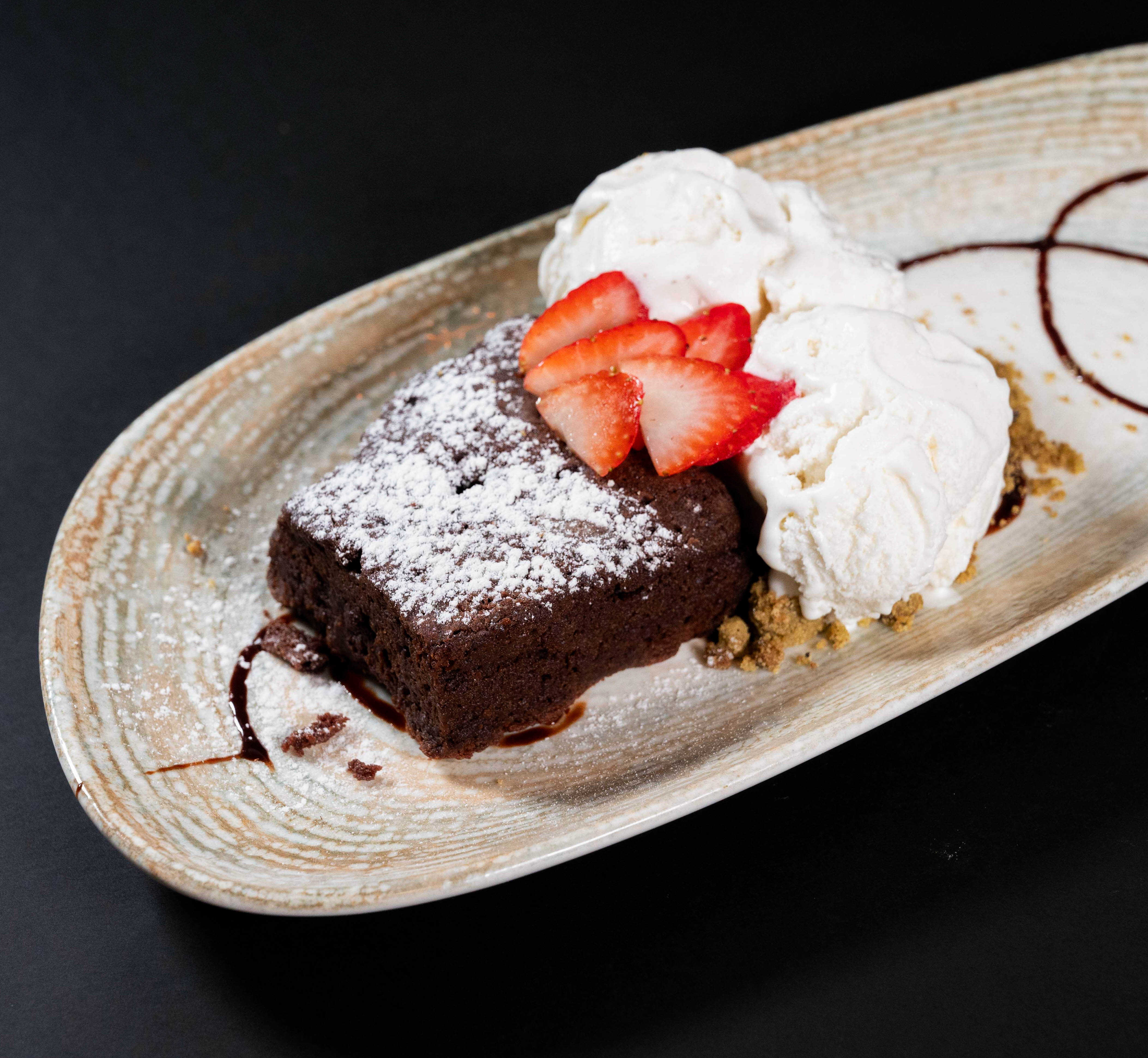 Delicioso pastelito humedo con intenso sabor a chocolate. Se sirve tibio acampañado de nieve de coco.