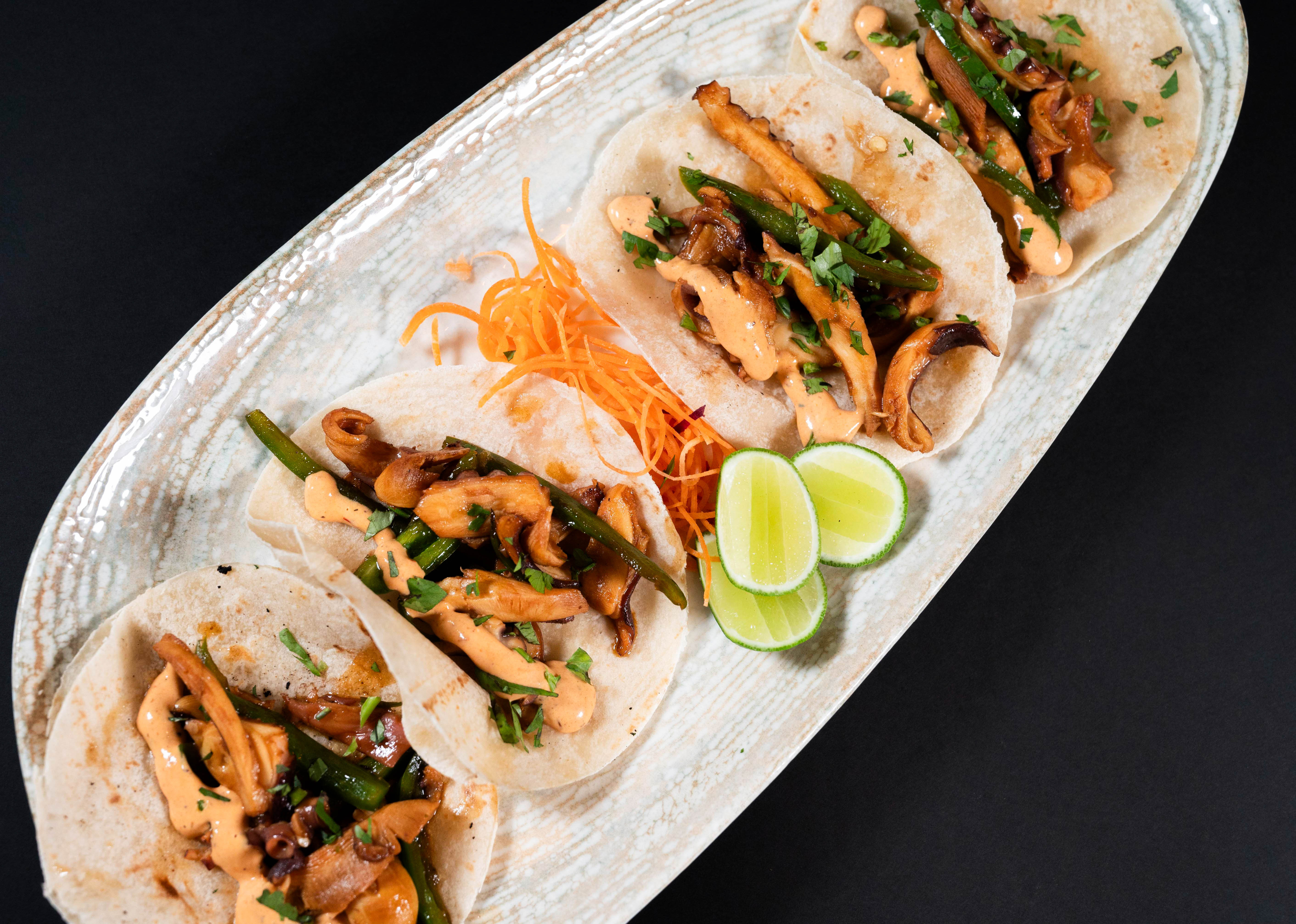 4 Tacos de pulpo salteado en salsas negras con un toque de ajonjolí y picante.