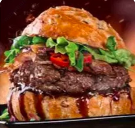 300 g De carne con centro de queso americano derretido, 2 rebanadas extra de queso americano, queso blanco, tocino, cebolla morada , tomate y lechuga. Incluye papas fritas.
