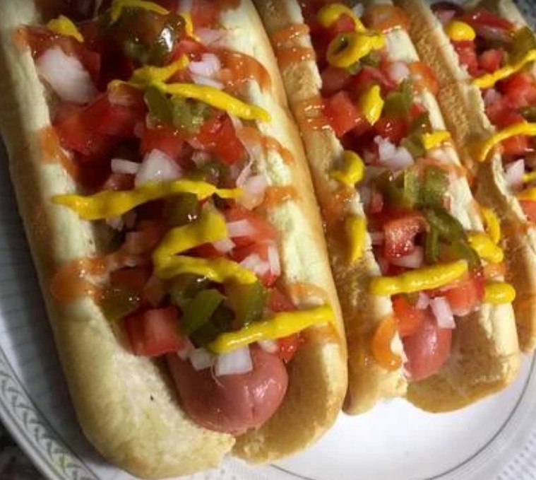 Pan, salchicha, tomate, cebolla, chile, mayonesa, mostaza y cátsup. ¡El clásico hot dog que todos aman!