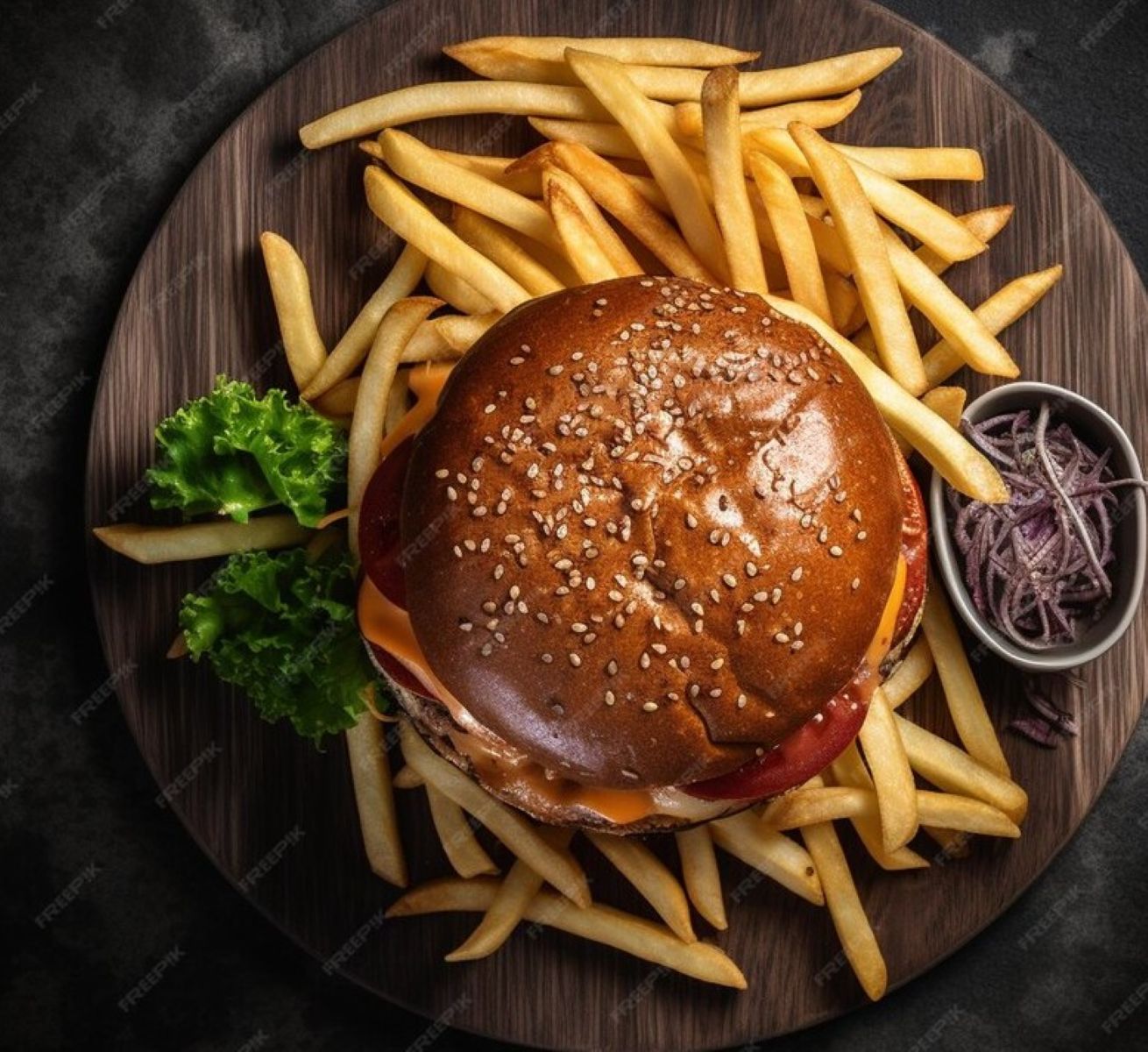 Hamburguesa especial en combo con una porción de papas fritas. ¡Un paquete inigualable!