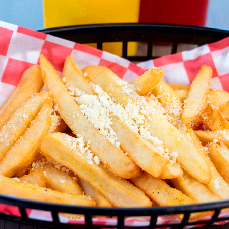 Orden de papas a la francesa (200g) prepradas con limon pimienta y queso parmesano.