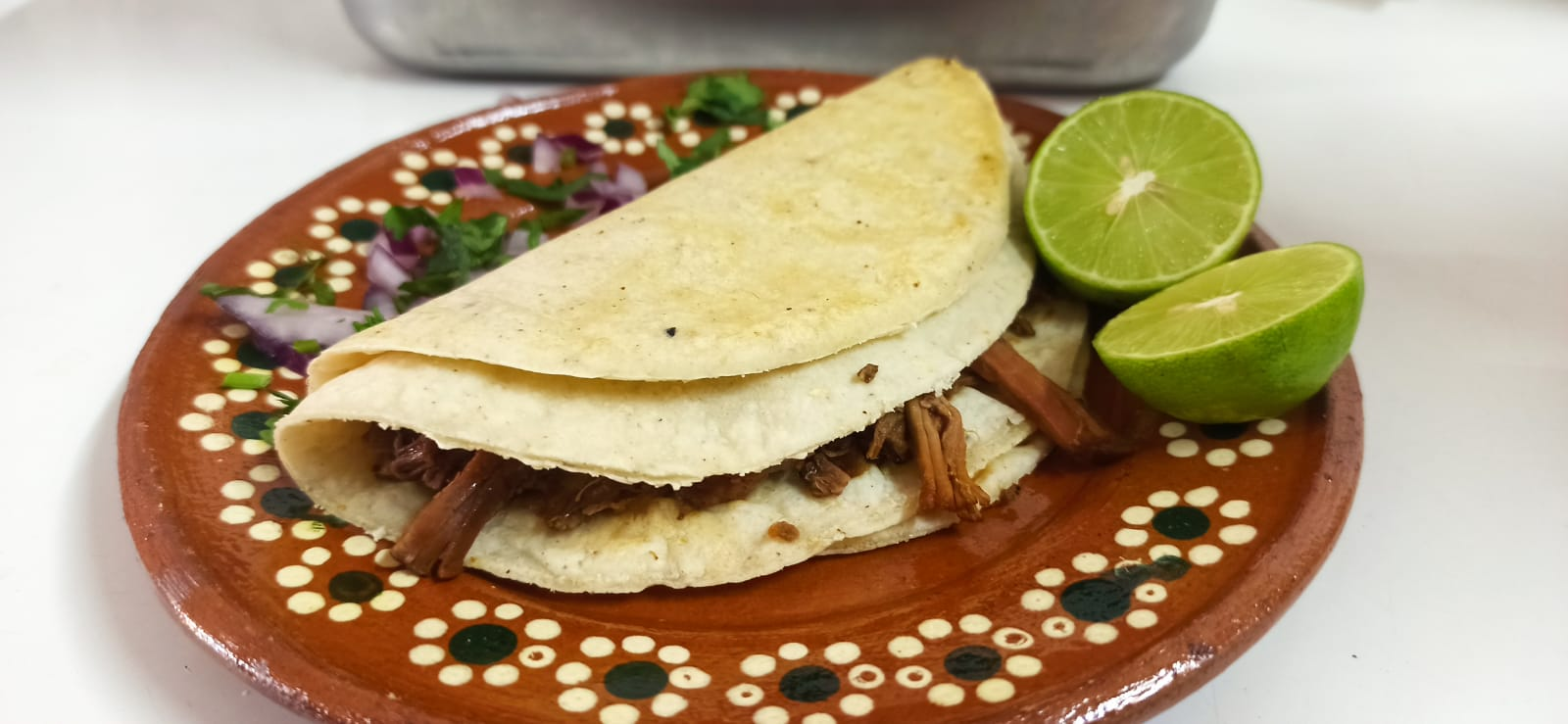 Taco suave de doble tortilla. Incluye consomé en pedidos de 2.