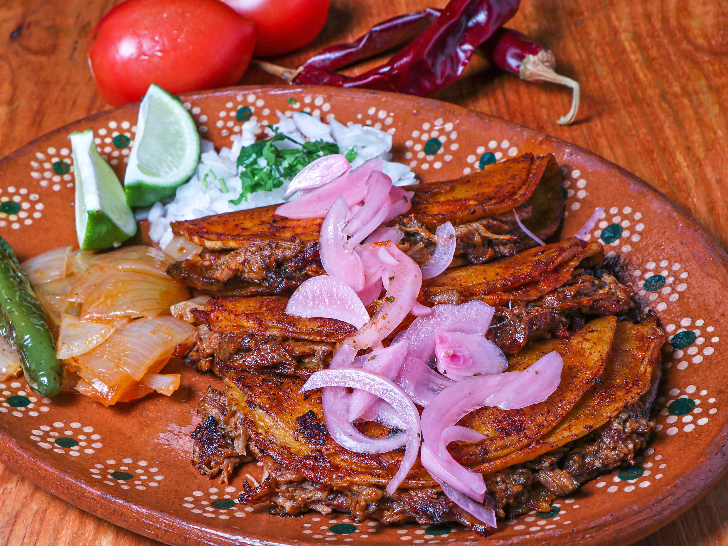 Acompañado de cebolla asada limon y salsa