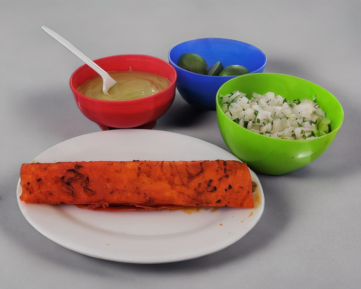 Burrito de carne de birria acompañado de cebolla con cilantro y limon