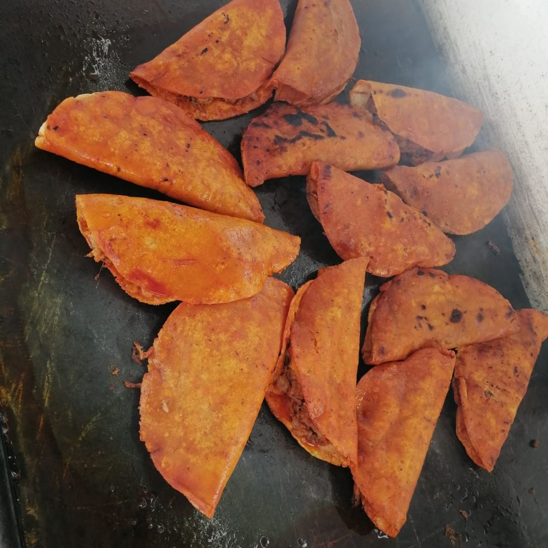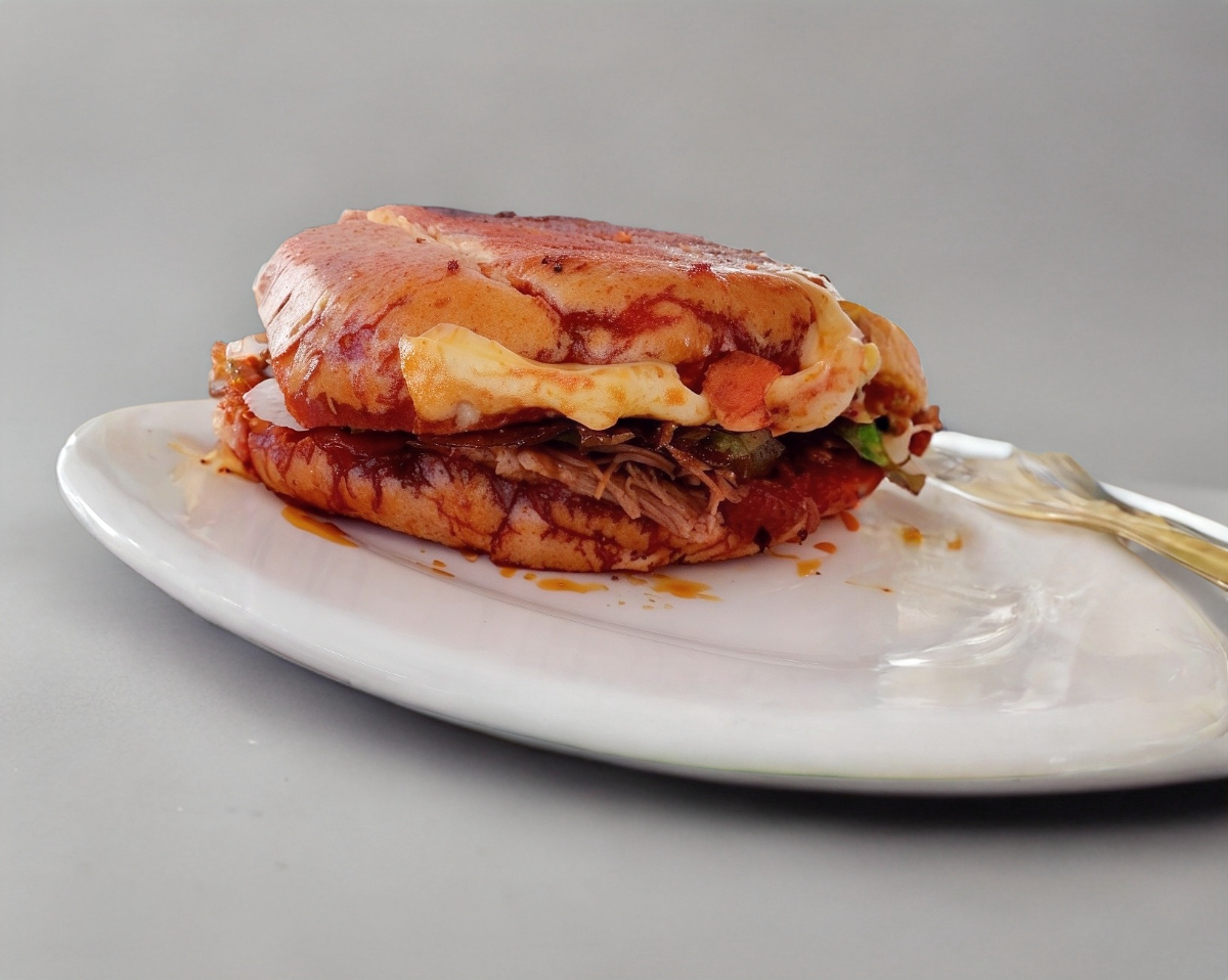 Carne de birria con queso tipo asadero en pan blanco ligeramente bañado con la grasita de la birria. Porcion personal