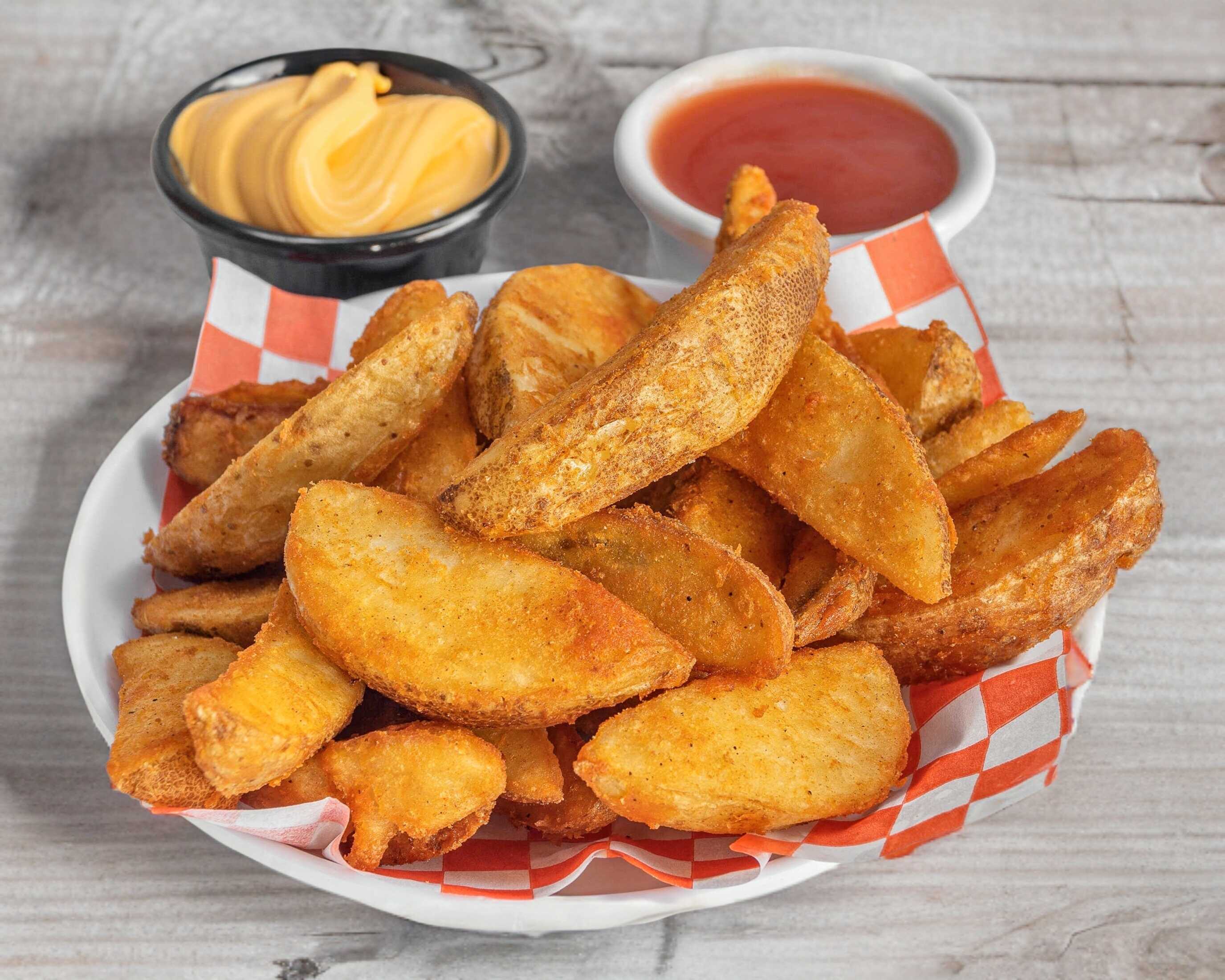 220 gr de papas gajo, acompañadas con aderezo de la casa