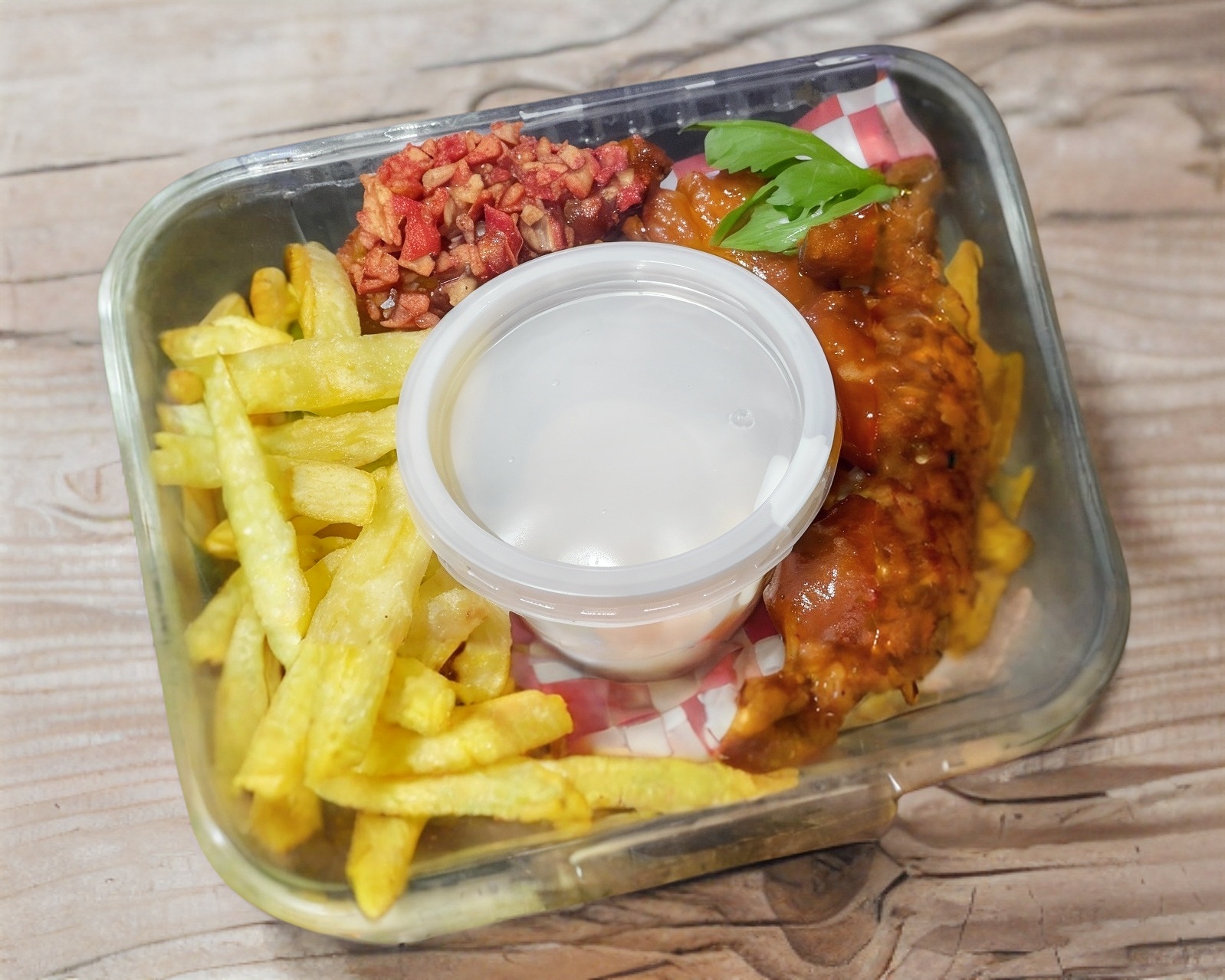 300GR DE BONELESS MEZCLADOS CON (SALSA BBQ Y SALSA MANGO HABANERO MEZCLA DE LAS 2 SALSAS), ORDEN DE PAPSA A LA FRANCESA,ADEREZO RANCH,.