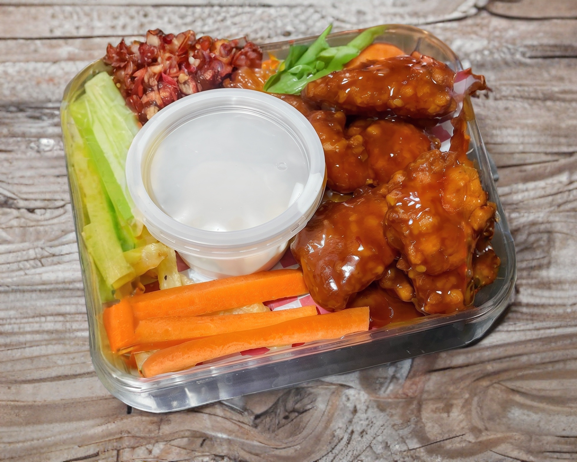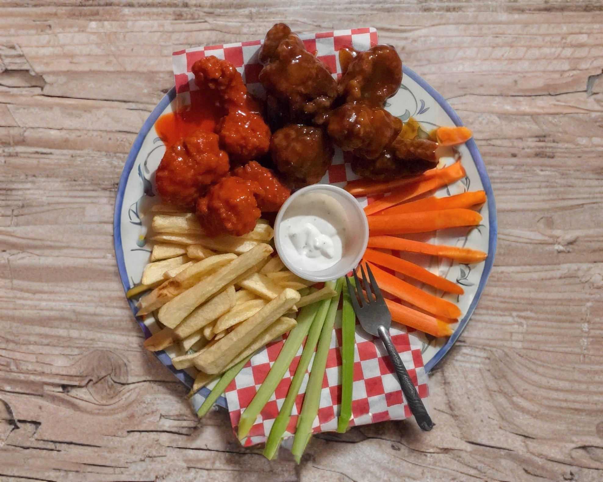 300GR DE BONELESS BUFALO, ORDEN DE PAPAS A LA FRANCESA PERSONAL,ADEREZO RANCH, ZANAHORIA, APIO. PLATO PARA UNA PERSONA