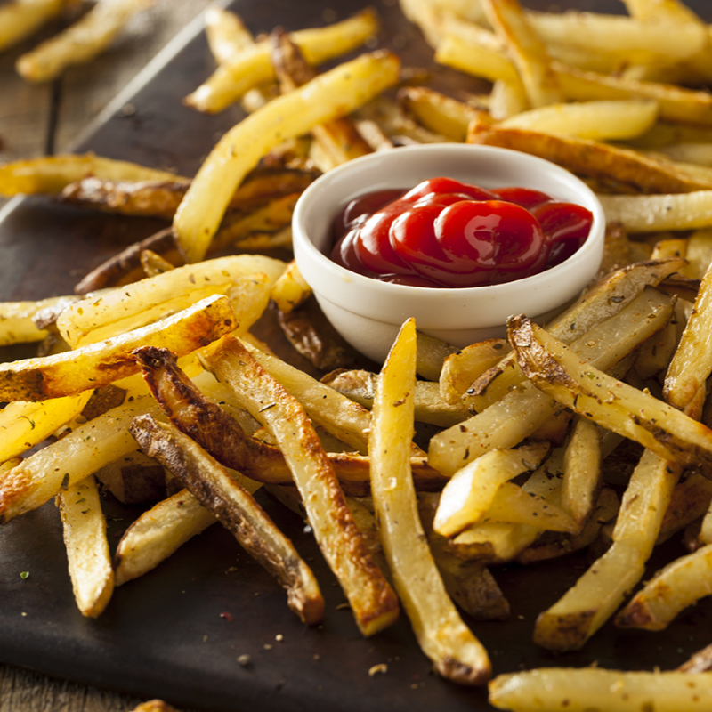 250gr de papas fritas, sazonadas con y acompañadas de catsup