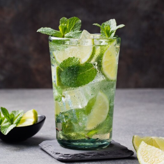 Bebida clásica y refrescante que combina la acidez del limón con el frescor de la menta y el toque del ron blanco.