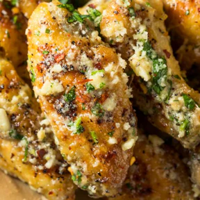 Porción de alitas bañadas en mantequilla y parmesano