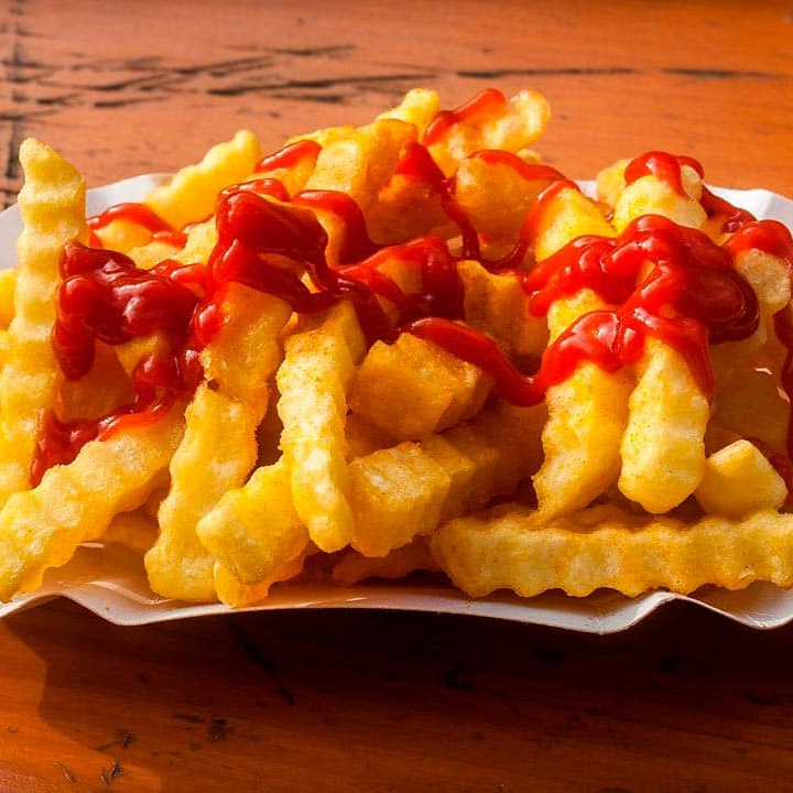 250g de papas, crujientes por fuera y suaves por dentro acompañadas por salsa de tomate