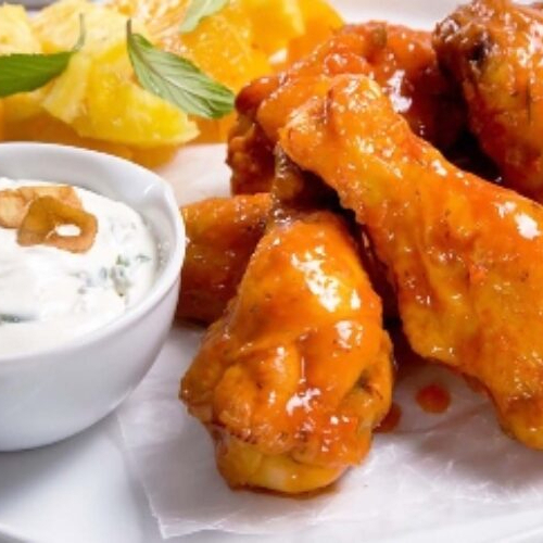 Porción de alitas bañadas en salsa bufalo