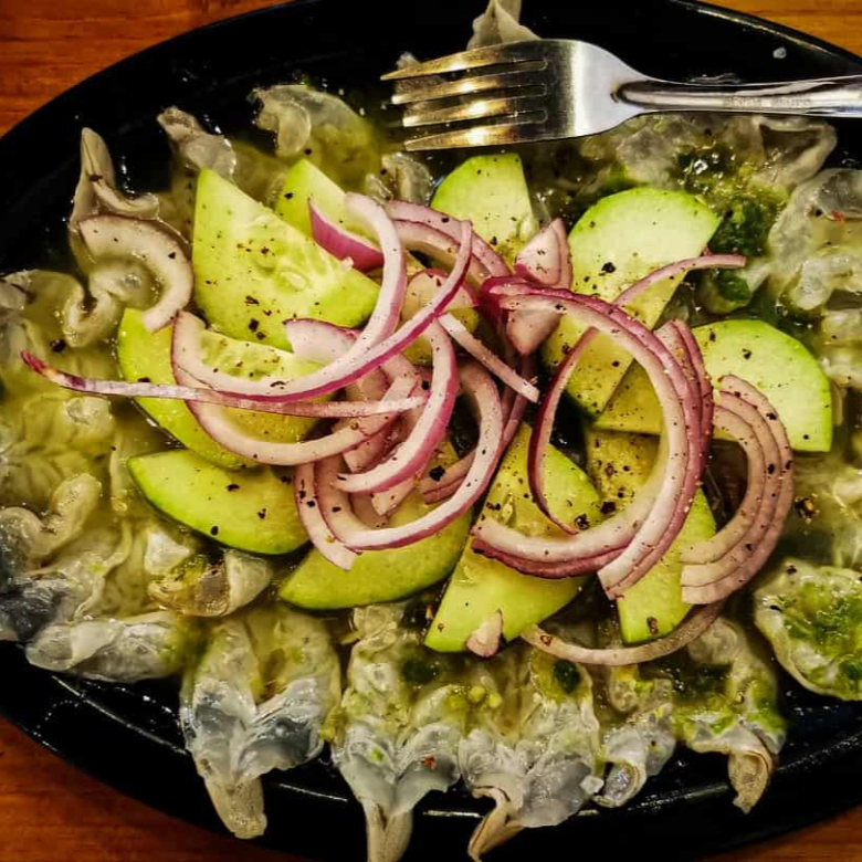 Camarón curtido en limón con nuestra deliciosa salsa verde, medio picante