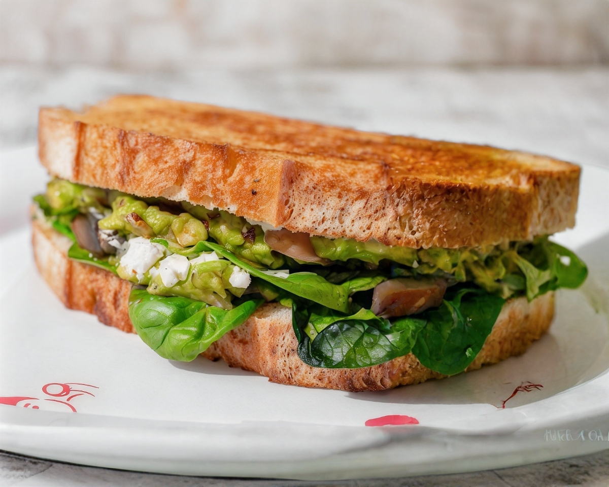 Pan de masa madre, espinaca baby, requeson, aguacate con un toque de aceite de oliva extra virgen, chilli flakes y aderezo de cilantro de jalapeño.