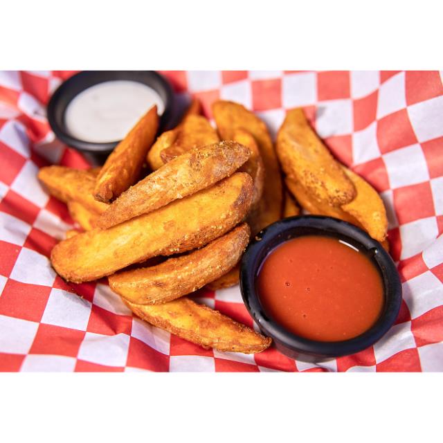 Papas Gajo Bañadas En Salsa Buffalo Aderezadas Con Ranch.