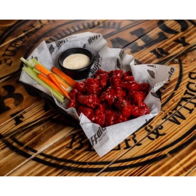 Alitas (500G), 1 Salsa, Vegetales Y Aderezo. El peso de las Alitas se calcula en crudo.