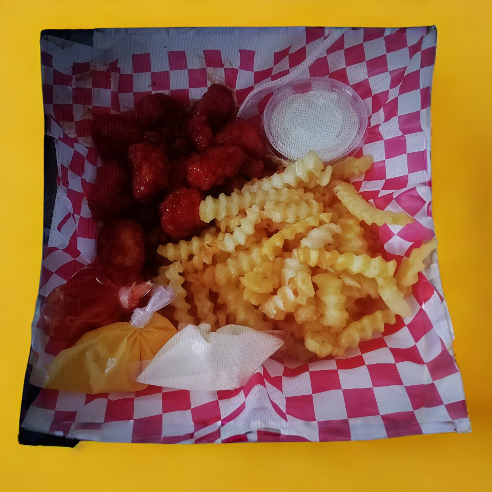 250g de boneles sabor BBQ con 200g de papas fritas acompañadas de un dip de aderezo ranch