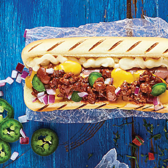 Pan hot Dog, Salchicha, mayonesa, catsup, Tocino, Queso manchego, Queso americano & Porción de Carne c sirloin