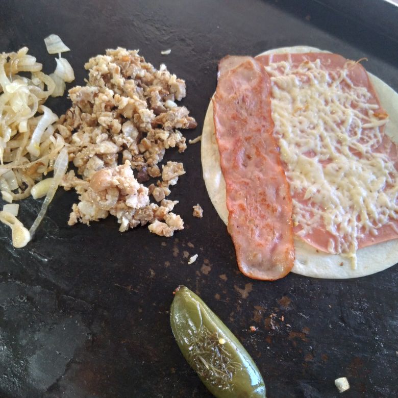 Carne casera jamón salchicha queso amarillo queso blanco excélsior tocino salchicha carne al pastor y piña