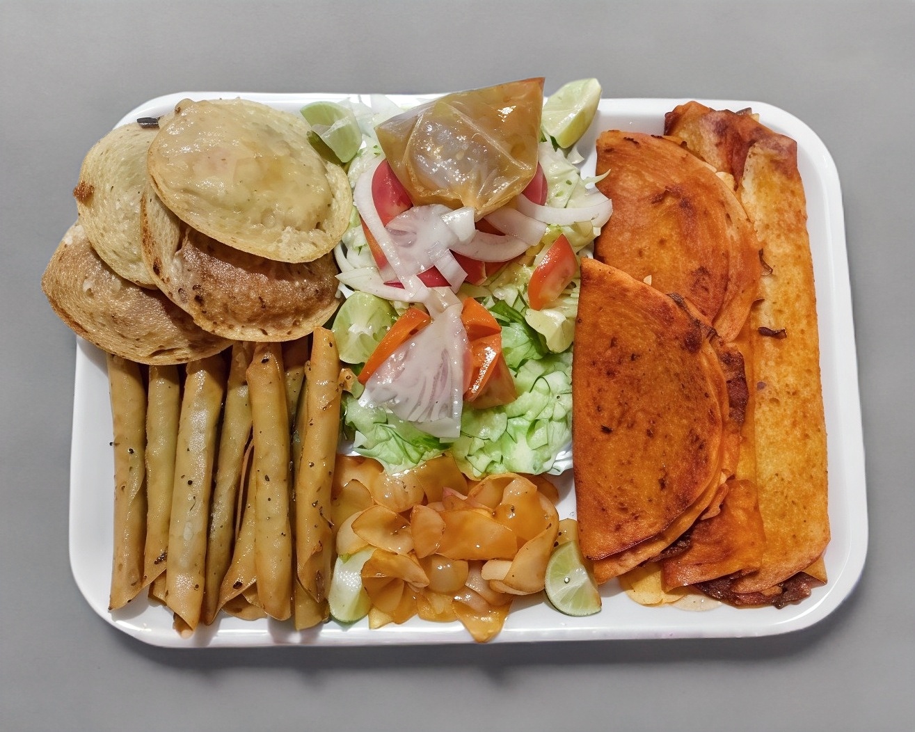 4 burros, 4 tacos, 16 tacos dorados y 8 gordas doradas