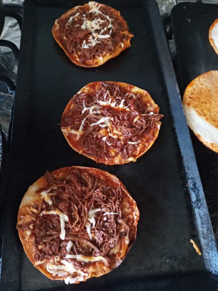 Quesadilla de harina con picadillo rojo, verde y desebrada (tu elijes cuál) con su lechuga, tomate y cebolla