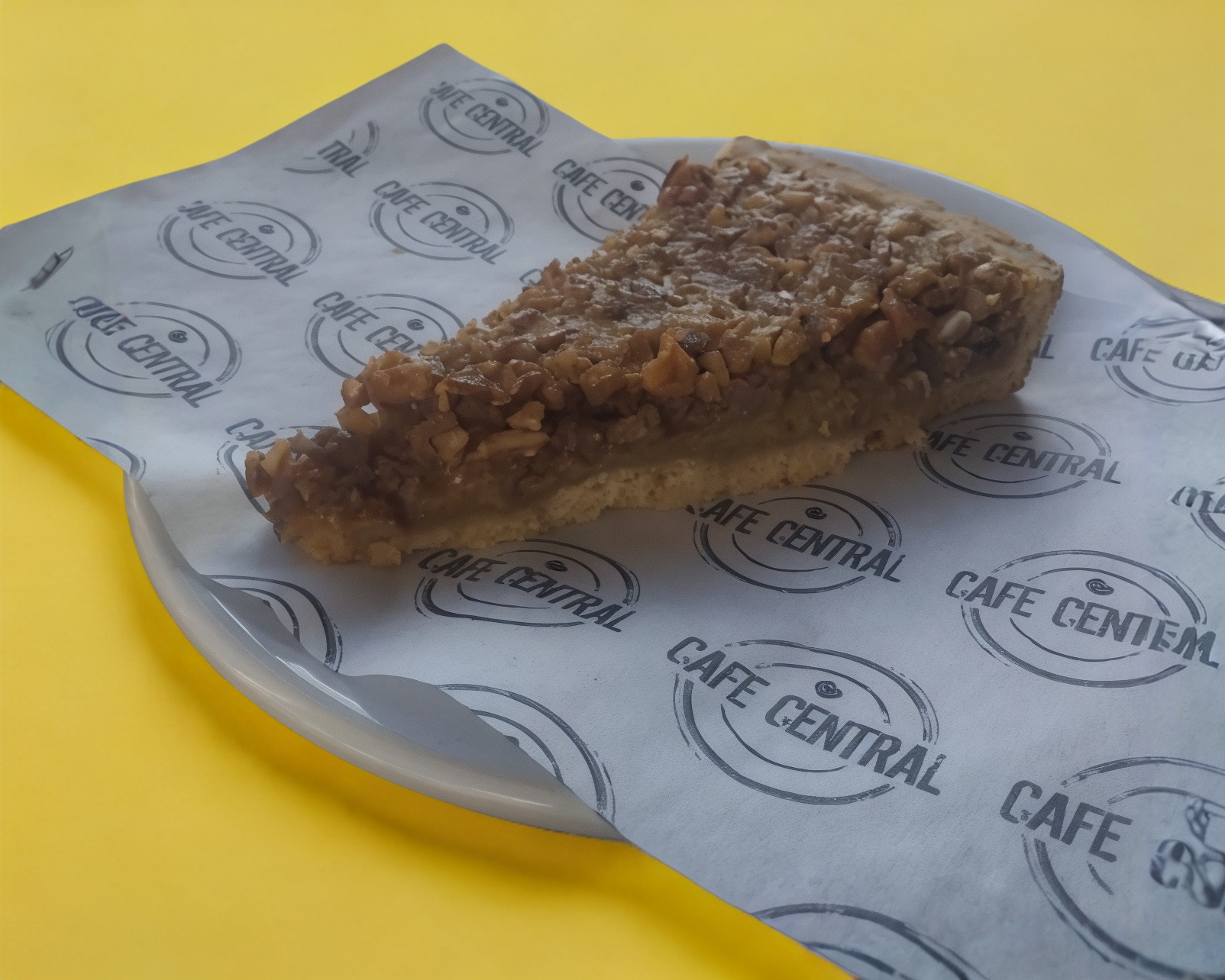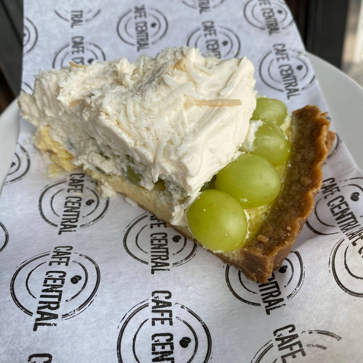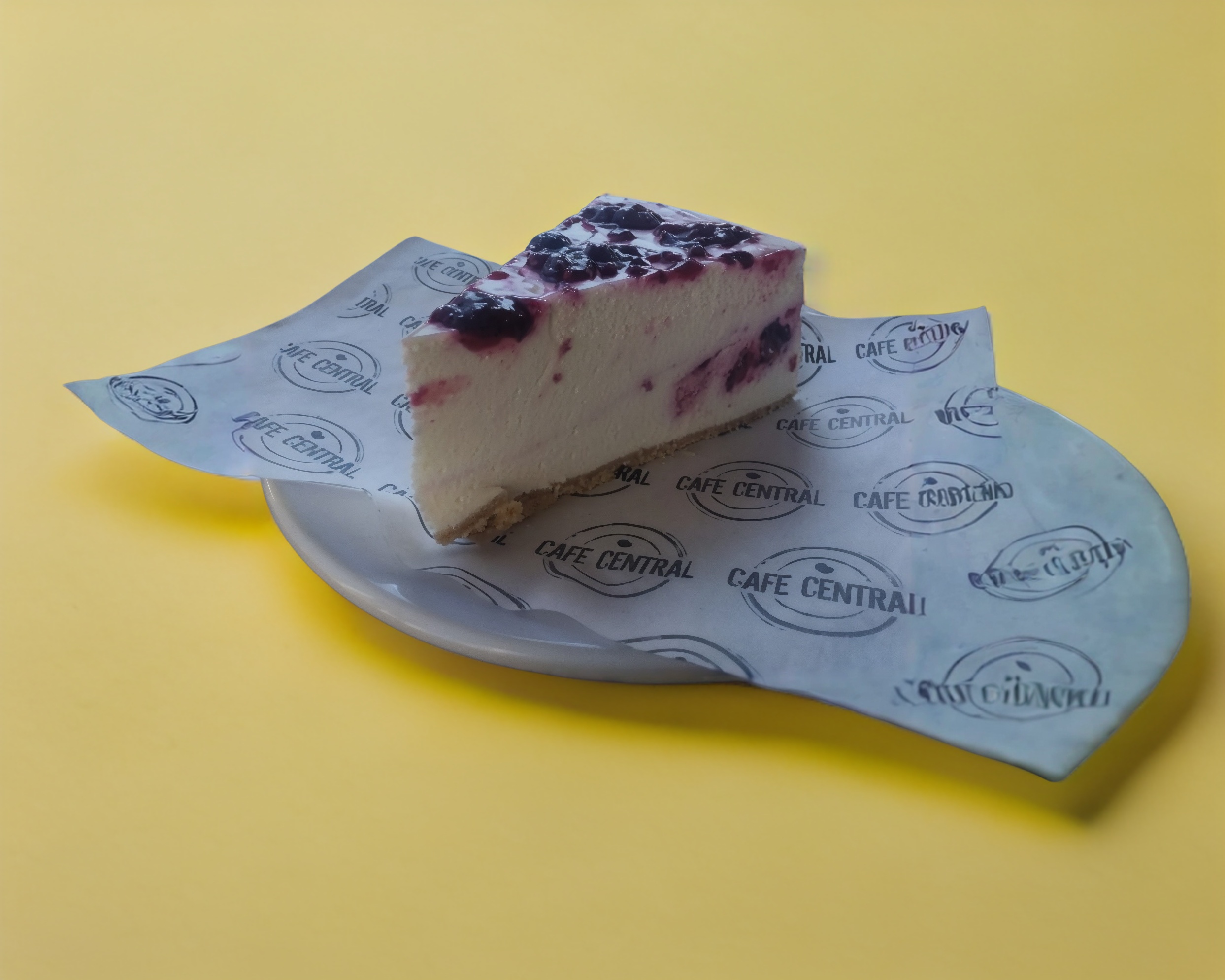 Suave y cremosa tarta de queso con sirope de cereza. Exclusiva de Café Central