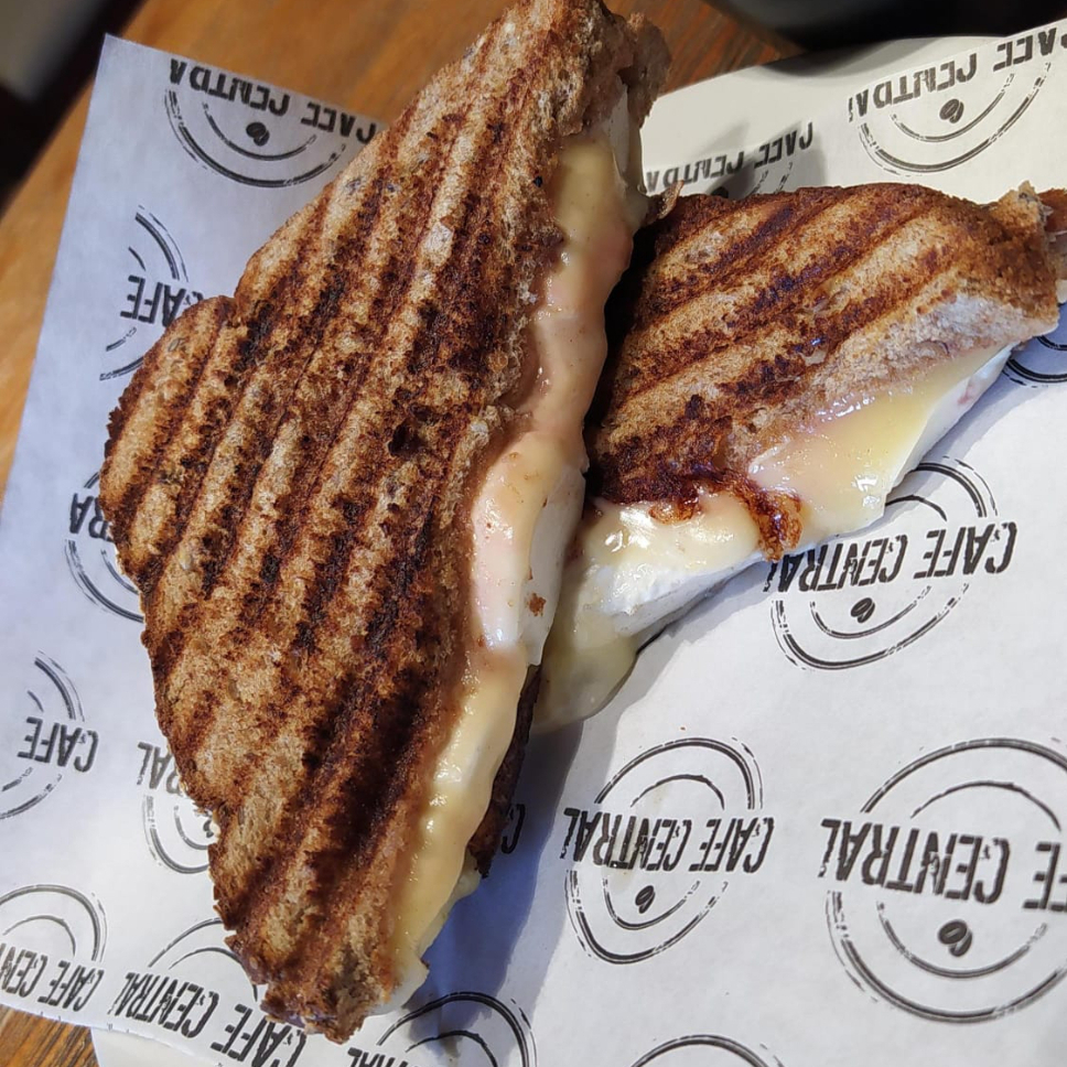 Delicioso pan integral con jamón, queso manchego y americano, unido con aceite de oliva con hierbas a la española.