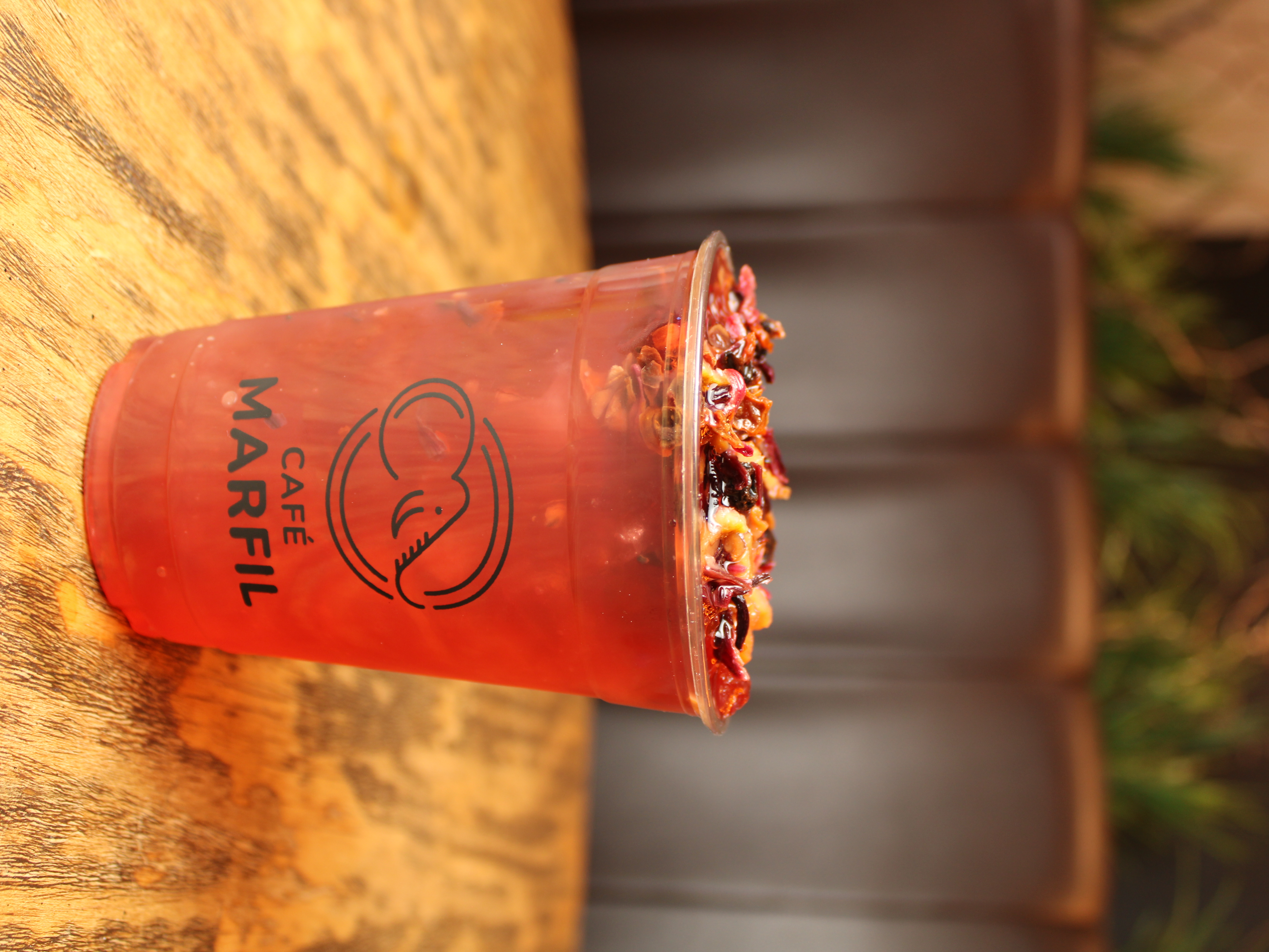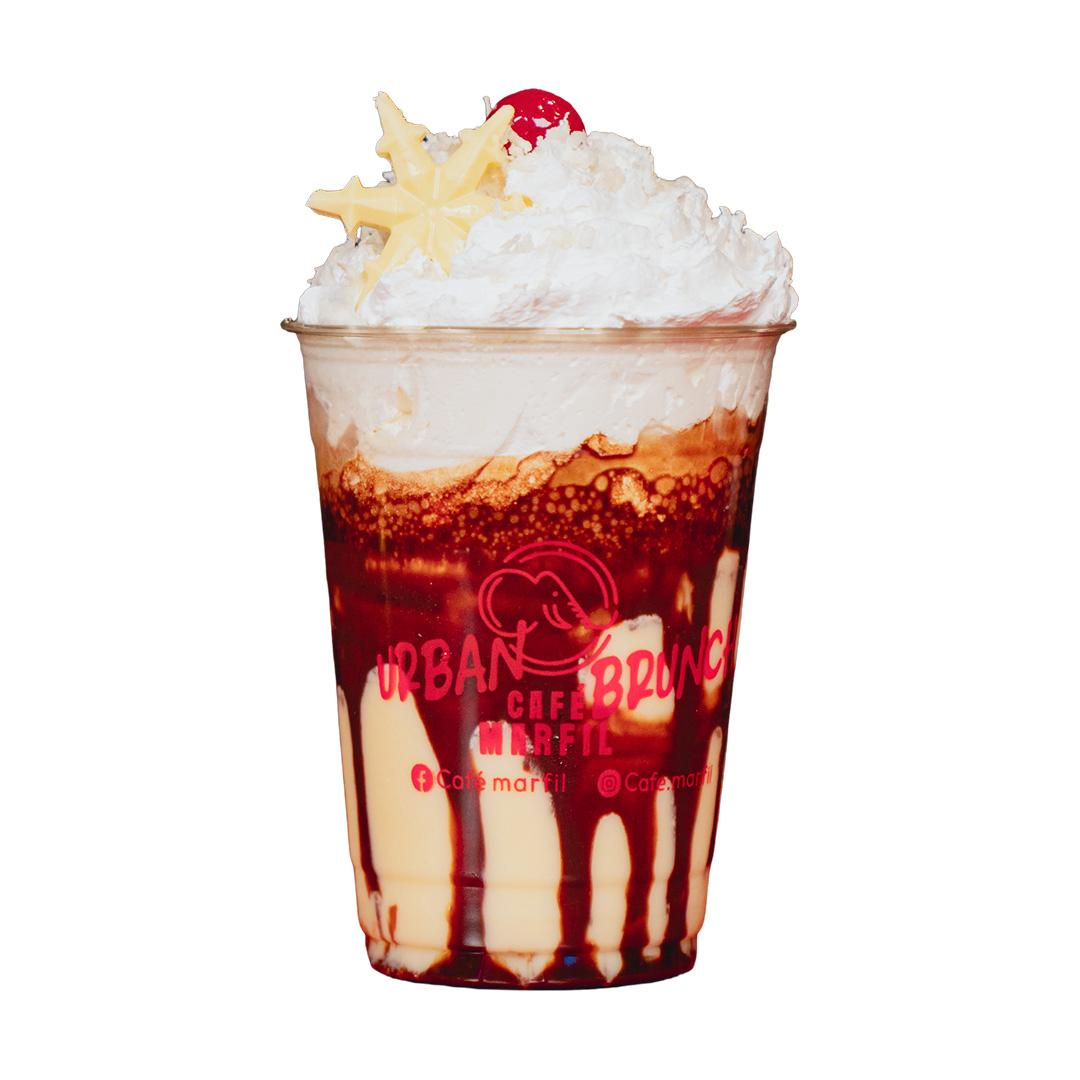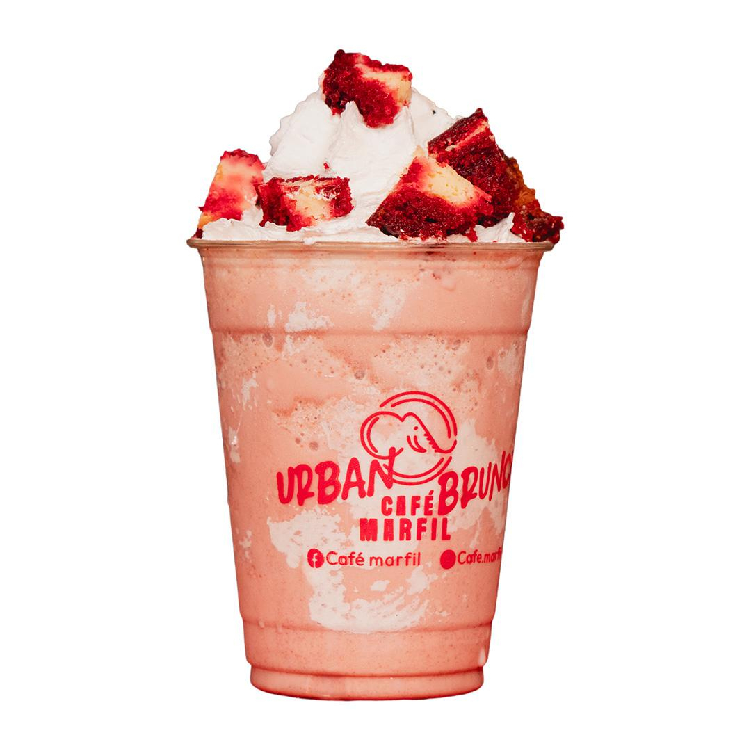 El Sabor Tradicional del Red Velvet en una bebida. Hecha con una rebanada del tradicional Pastel.