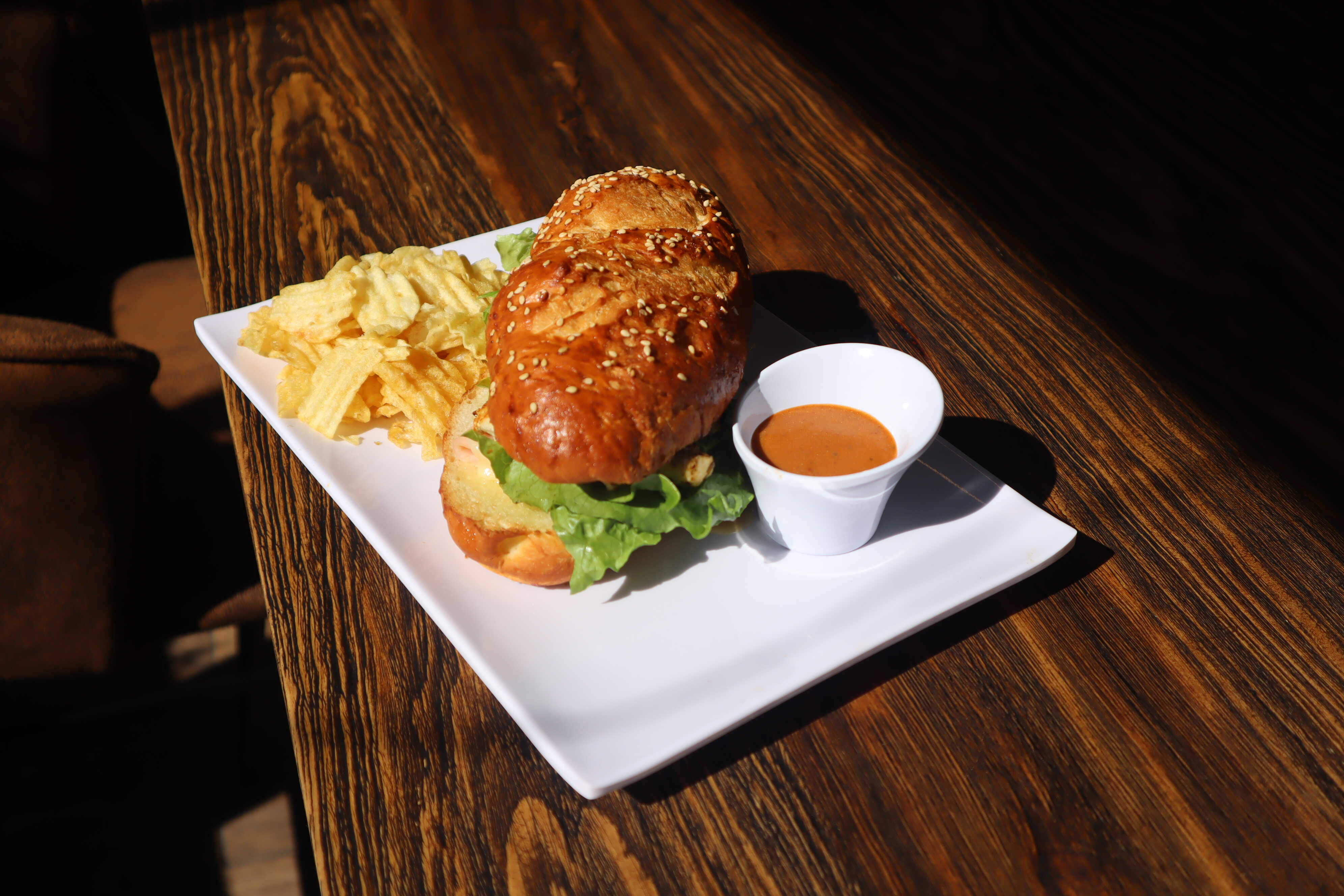 Delicioso sándwich tostado a la plancha con mantequilla de hierbas finas, tomate, lechuga italiana, queso amarillo, queso manchego, mayonesa y pechuga de pavo, acompañado de chips de papas fritas y nuestro aderezo de chipotle.