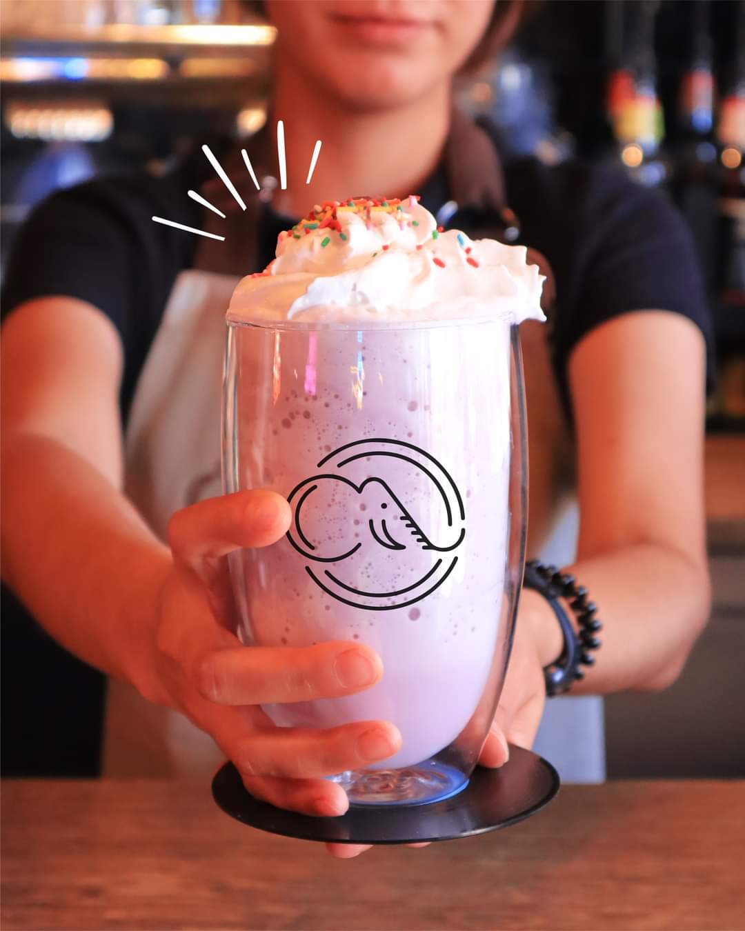 Delicioso y refrescante Frappe Taro coronado con nuestra riquisica crema batida con un toque de vainilla en nuestra presentacion de 16 onzas