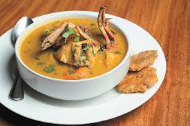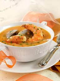 Servida con pescado, camaron, calamar, repollo zanahoria y cilantro