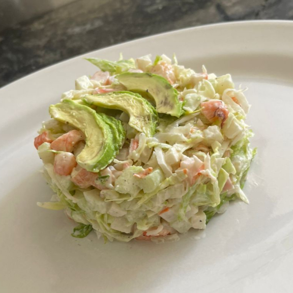 Servida con camarón, surimi, pepino, jicama, lechuga y mayonesa
