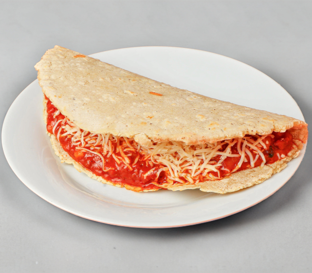 Tortilla grande de maiz hecha a mano rellena de queso y tu guiso favorito.