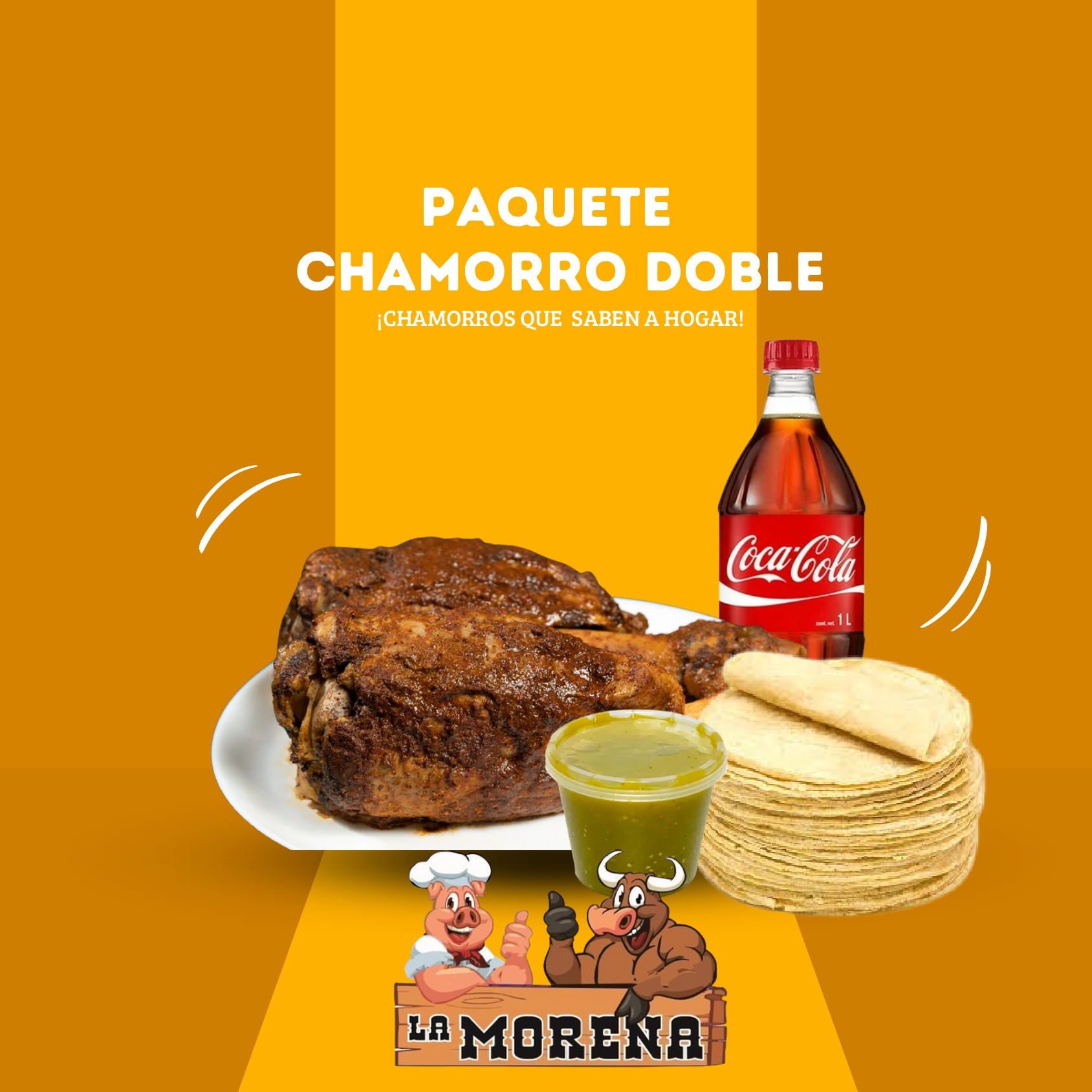 2 Chamorros + 1 Kg de Tortillas + 2 Salsas + 1 Coca Cola 1 Litro
