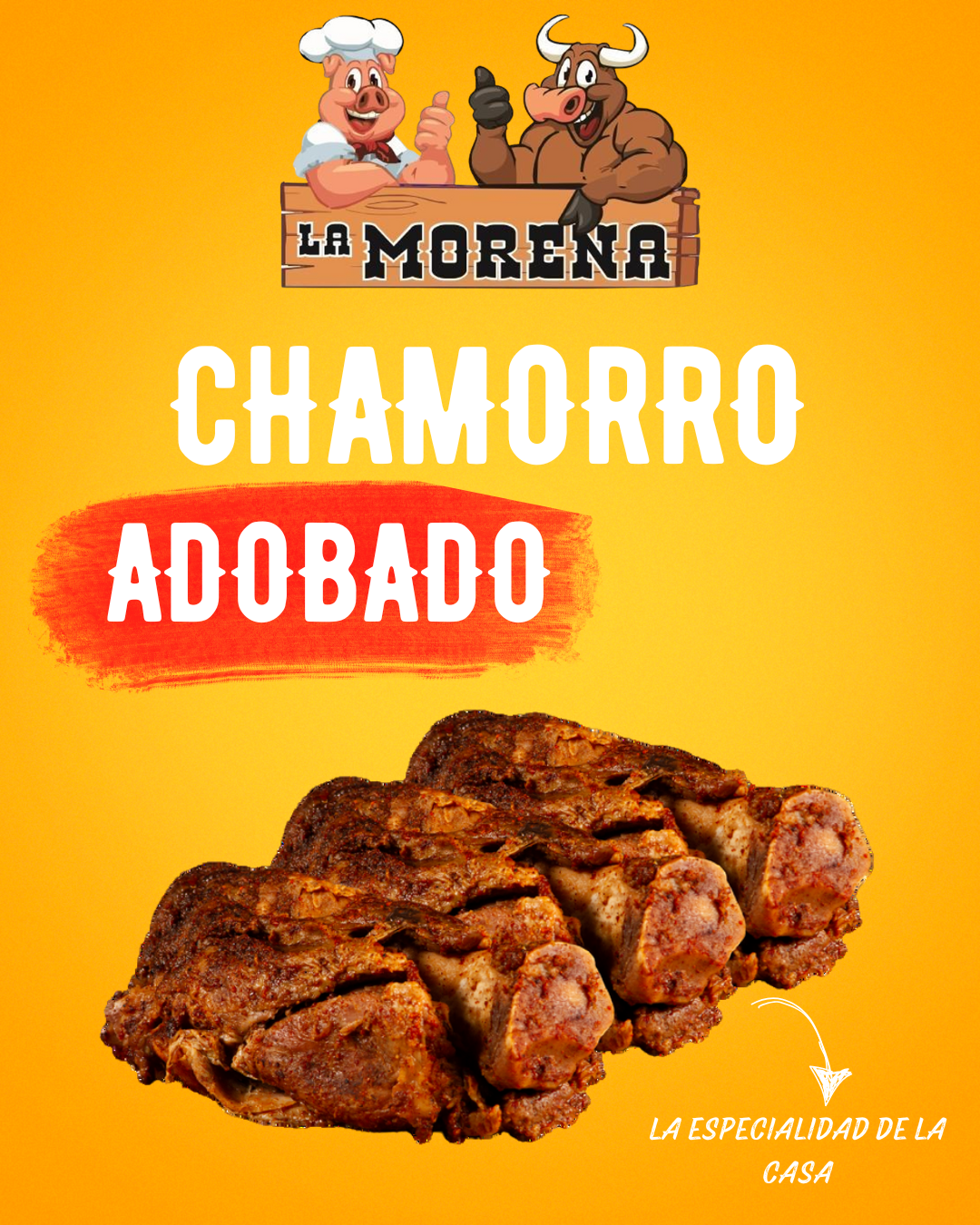 Chamorro adobado. suave, jugoso y lleno de sabor, preparado en adobo casero acompañado de salsas artesanales, cilantro fresco y el toque perfecto para que disfrutes al máximo cada bocado