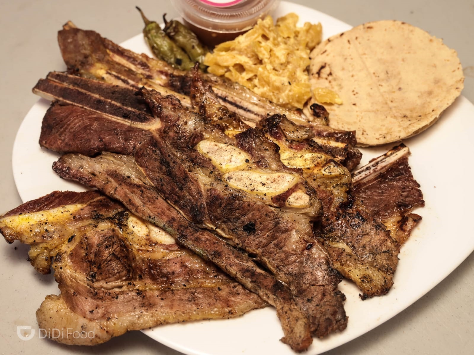 1 Kilogramo de exquisitas costillas de res cargadas (peso en crudo), tortillas, cebollitas, salsa y chiles toreados.