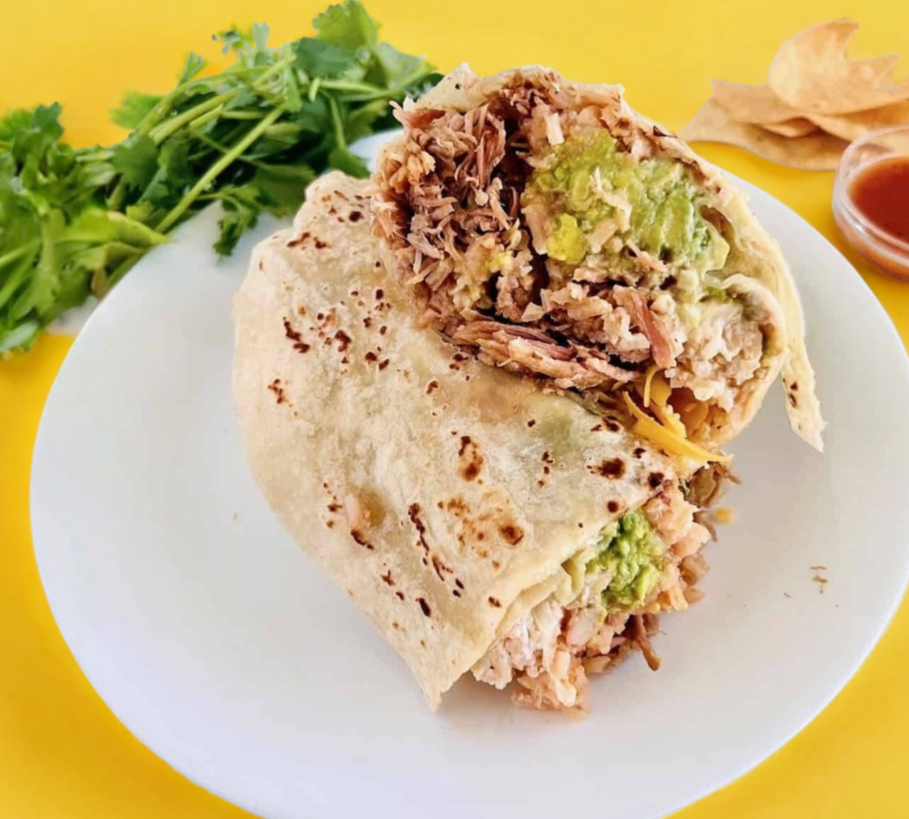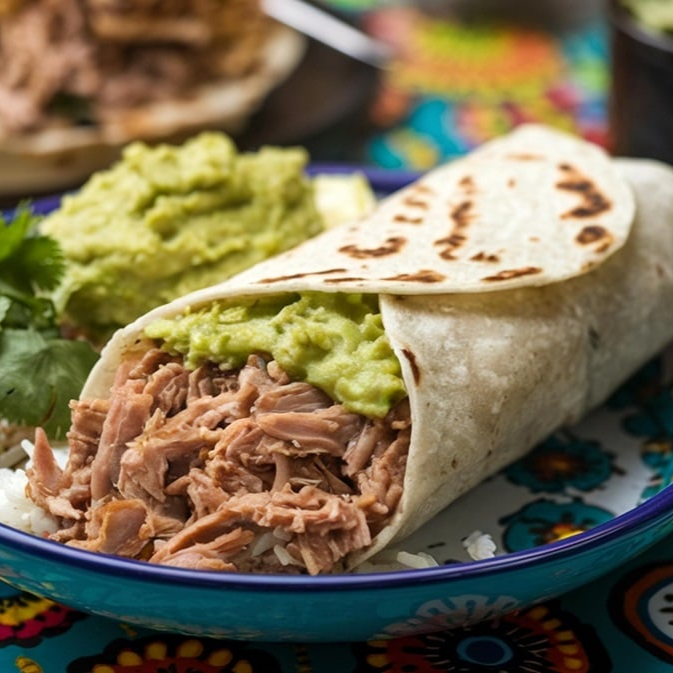 Rico Burrito De Carnitas Con Morcon Y Cueritos Con Su Mayonesa Y Aguacate Su Salsita Y Su Verdura