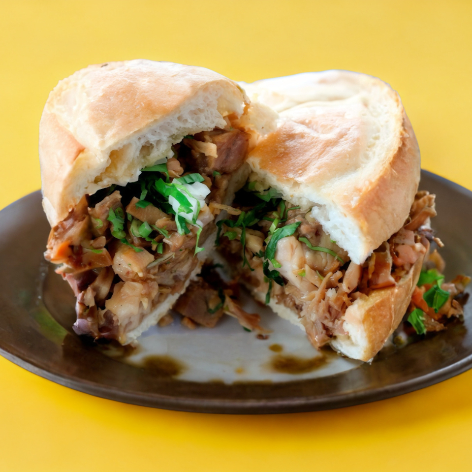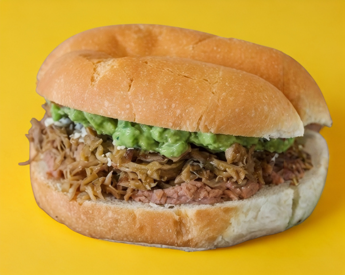Rica Torta De Carnitas Morcon y Cueritos Con Aguacate Y Mayonesa con Sus Salsitas Y Verdurita